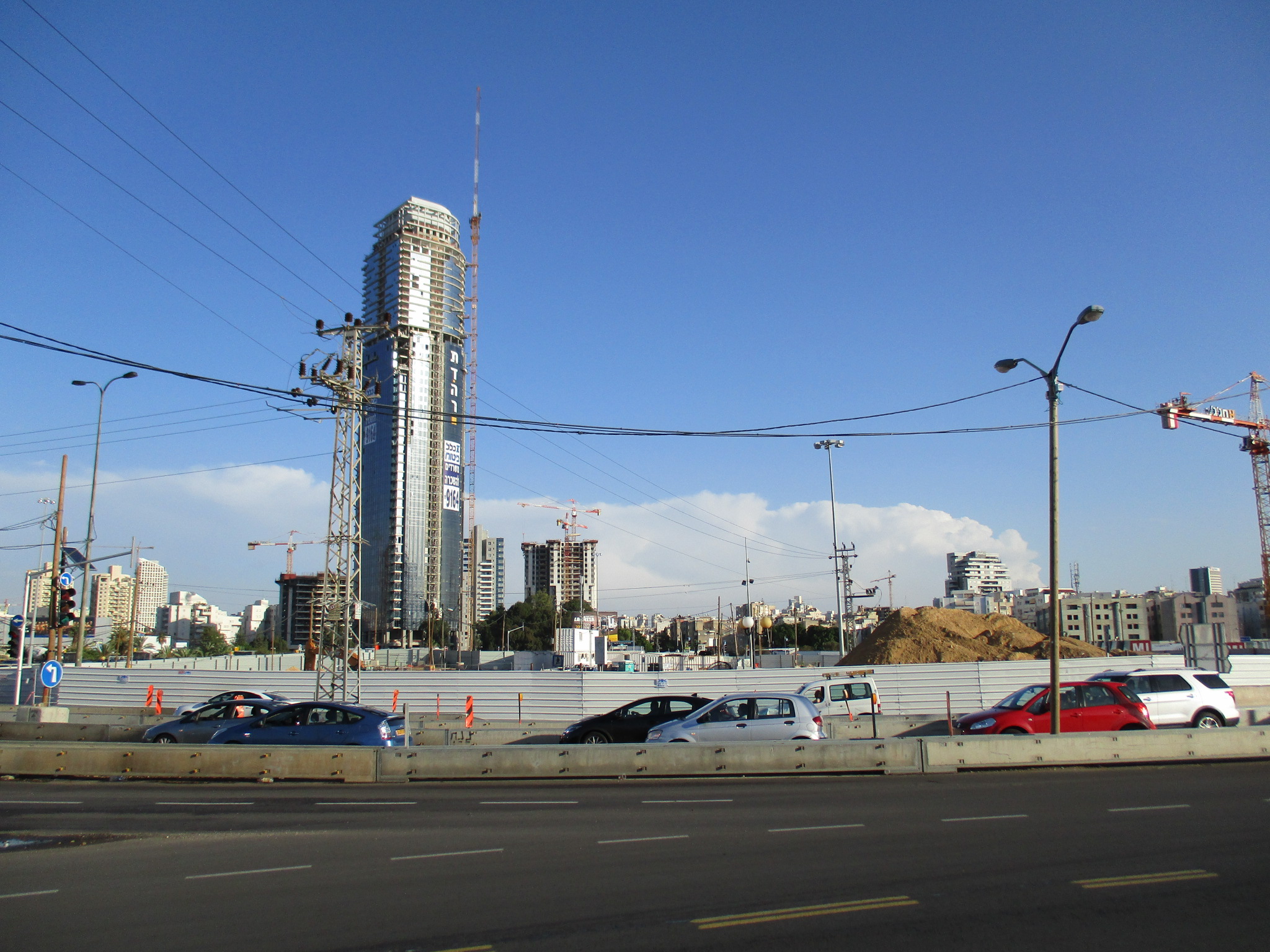 Стройка по обоим берегам Аялона и по обе стороны дороги.