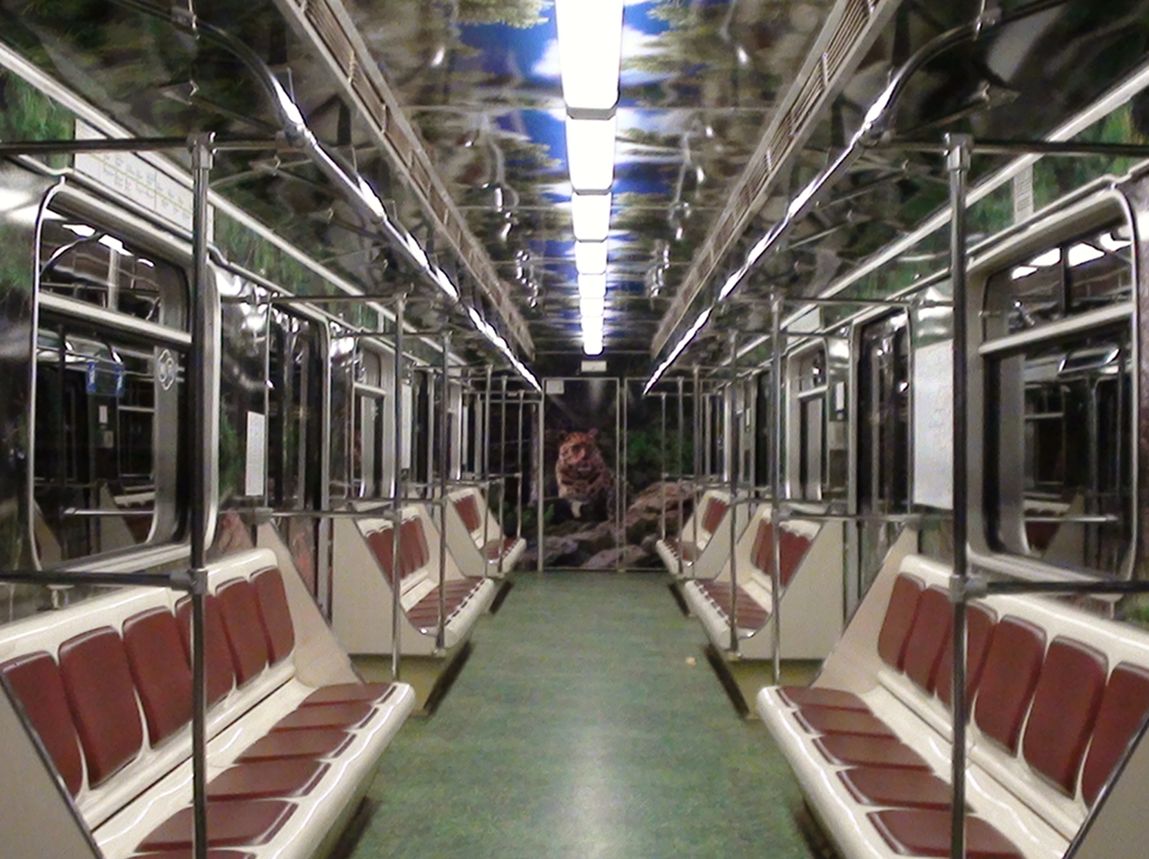 Как известно, в Москве с 27 сентября 2015 г. курсирует "Полосатый экспресс". Салон почти весь (кроме поручней, диванов и окон) оклеен плёнкой. Бывало ли такое ранее в Москве, или это первый в своём роде поезд?