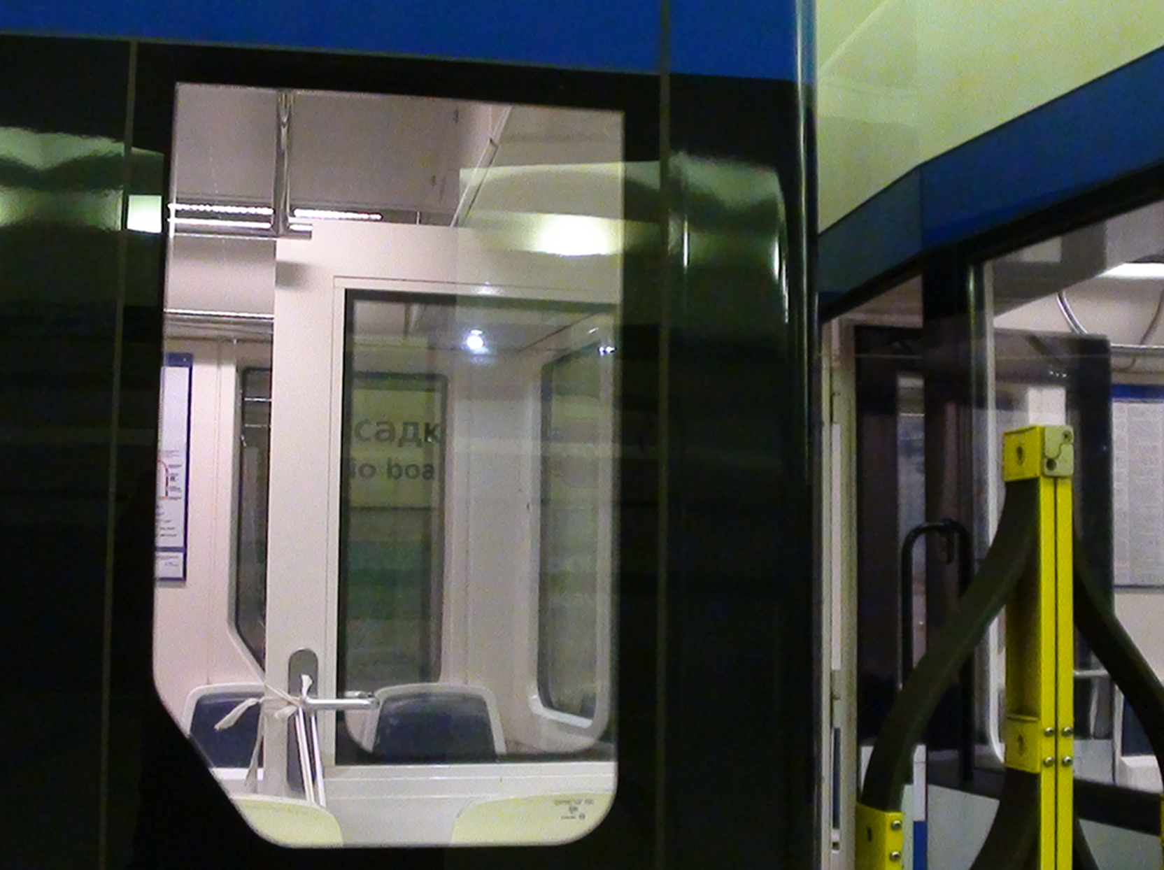 Сегодня на 4-й НеВе были какие-то испытания. Все межвагонные двери были открыты, и сквозь них тянулся какой-то кабель, сквозь весь состав. Может, wi-fi испытывали?