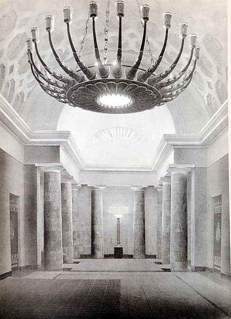 Такое ощущение, что это зарисовка из проекта архитектурного оформления, и что в реальности эта люстра там никогда не висела.