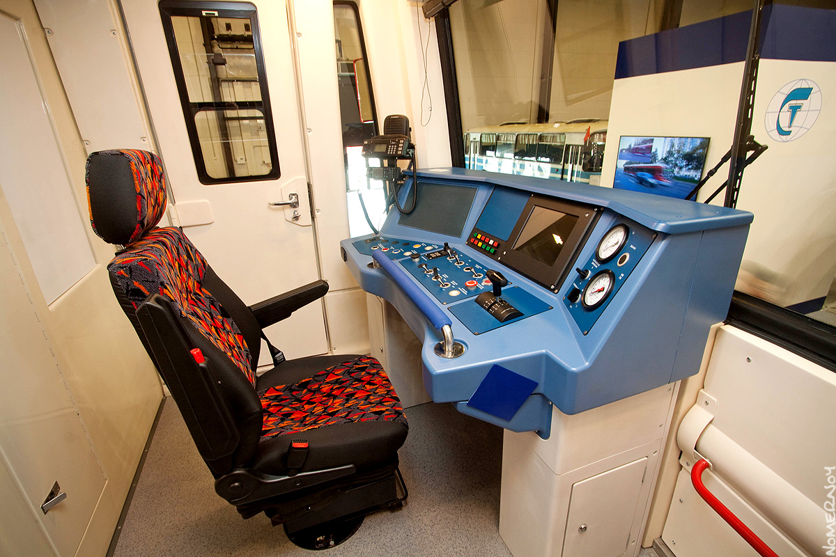 Салон, за вычетом «гладильных досок» весьма понравился. Текстильные сидения красивы, достаточно плотны и комфортны. Щековины из каленого стекла с оранжевым оттенком - тоже красиво, удобно и практично, в отличие от хромированных труб первых Юбилейных. Двери с окнами под НеВу симпатичны. Насчет гладильных досок спинок для инвалидов - крепление показалось ненадежным. В режиме часа пик группа тучных и не очень пассажиров вполне будут способны эту конструкцию демонтировать. Опять же - подождем «крещения огнем».