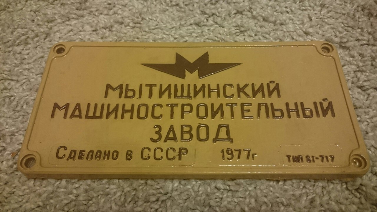 С заводской табличкой долгая история. Мои друзья - коллеги Службы профориентации Московского метрополитена привезли из Народного музея московского метро оригинальную табличку, взяв расписку за сохранность. Обзвонив несколько организаций, получил ценовые предложения от 19 до 23 тысяч рублей за изготовление реплики. Учитывая сложности закупочной системы гос.учреждения и временной лимит, подобные задачи пришлось решать за собственные средства и конечно это было дорого для меня. Решил попробовать изготовить самостоятельно - в ход пошли детали от сломанного стола, плинтуса, компаунд масса из жидкого силикона и смолы различной природы (полиуретаны и эпоксиды). Загвоздка еще заключалась в годе выпуска - на оригинале был 1981-й, а нужен был 1977-й. Слава богу, «семёрка» не самая сложная цифра, поэтому удалось ее воспроизвести ювелирно из пластиковых прутков для моделистов (диаметром 1 мм). Первые отливки из полиуретана тут же выявили недостаток - из-за технологической невозможности обеспечить в домашних условиях избыточное давление плохо проливались надписи и оставались каверны и раковины (пузырьки). Попробовал даже вакуумирование на производственных мощностях метро - не помогло. Далее вход пошел силикат полимочевины от моих друзей из хим.концерна BASF - стало лучше, но все равно качественно не получалось выполнить отливку. И наконец только к 12-й отливке стало получаться с использованием эпоксидного состава от какой-то безумно дорогой швейцарской грунтовки под промышленный пол. Длительное время полимеризации позволило вручную выгнать пузыри. Готовая отливка была загрунтована и выкрашена кистями вручную. Краску нужных оттенков удалось найти только в модельных магазинах (японская Tamiya).