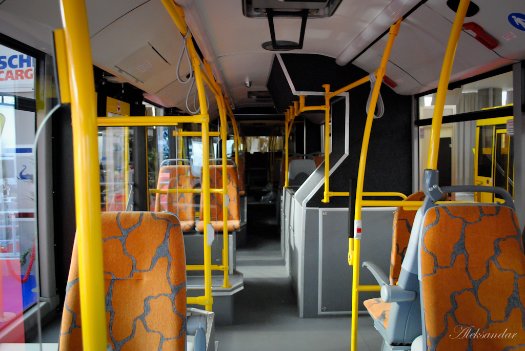 Внутри автобус отличается от своих пражских собратьев наличием кондиционера, ремней безопасности и точки доступа Wi-Fi. Кроме того, несколько сидений установлены в местах сочленения его частей.