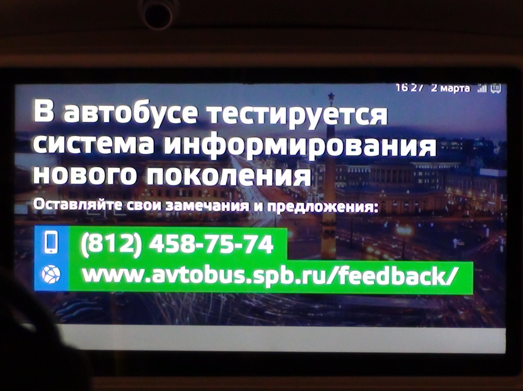 Уже не первый раз вижу в новых автобусах экраны, где написано, что тестируется новая система информирования пассажиров.