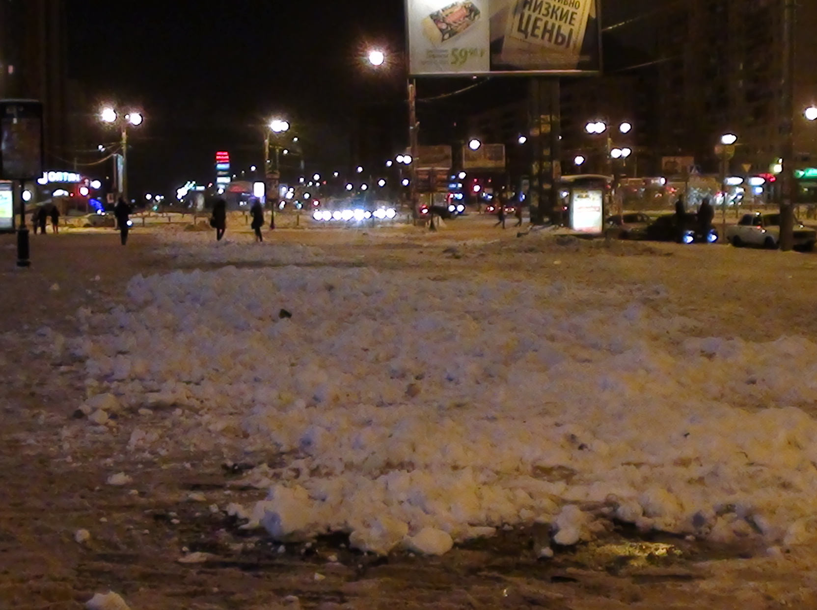 У пр. Просвещения из-за палаточного городка-рынка который почти каждый день там возникает из разных торгашей, скопилось много снега (под палатками). Теперь не пройти там