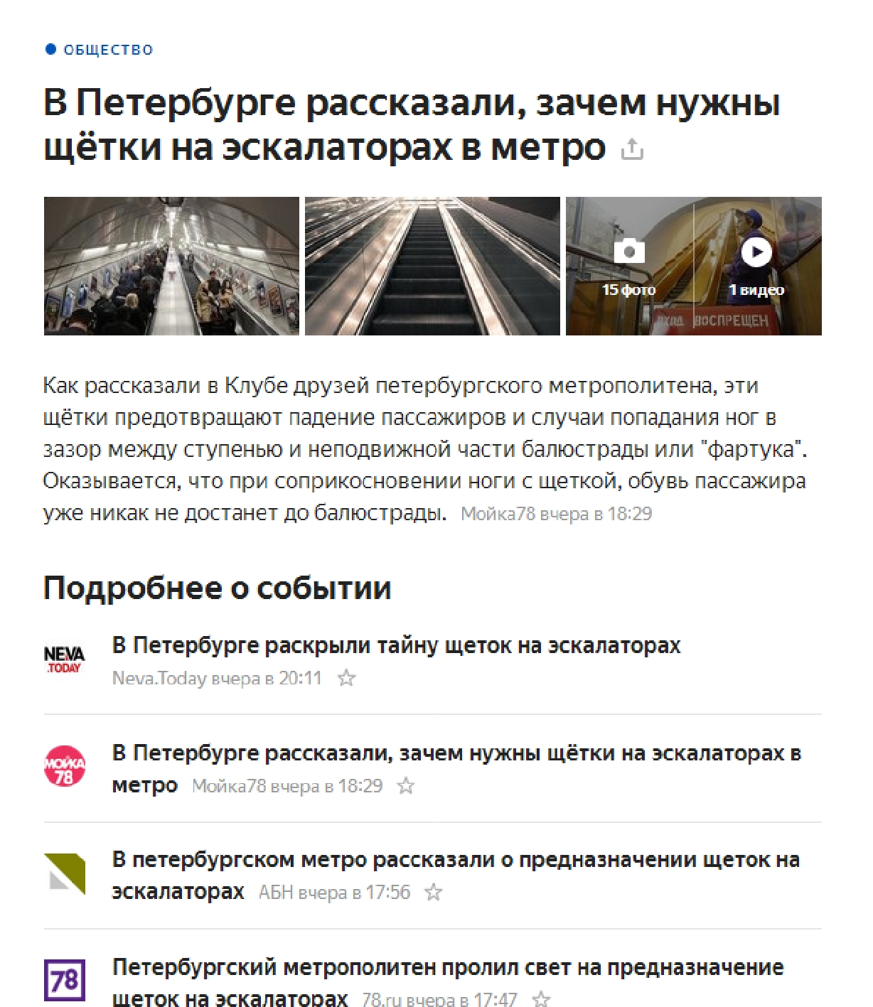Тем временем, в Яндексе снова новость из серии "В Петербургском метрополитене рассказали, почему...".