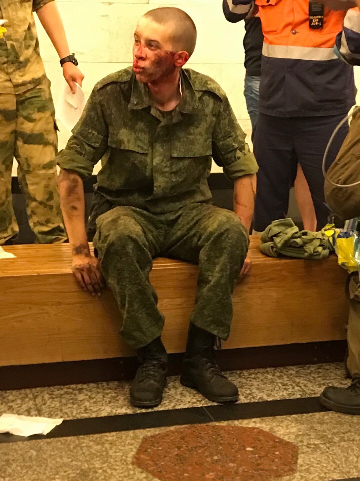 На станции "Автово" солдат срочник бросился под поезд метро. Машинист поезда использовал экстренное торможение и солдат остался жив.
