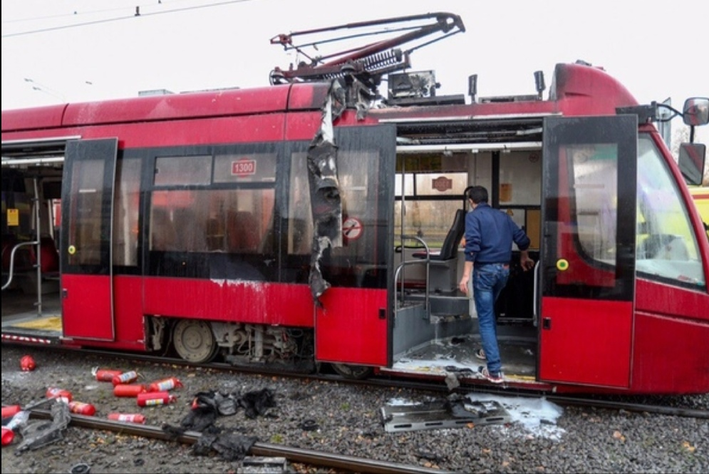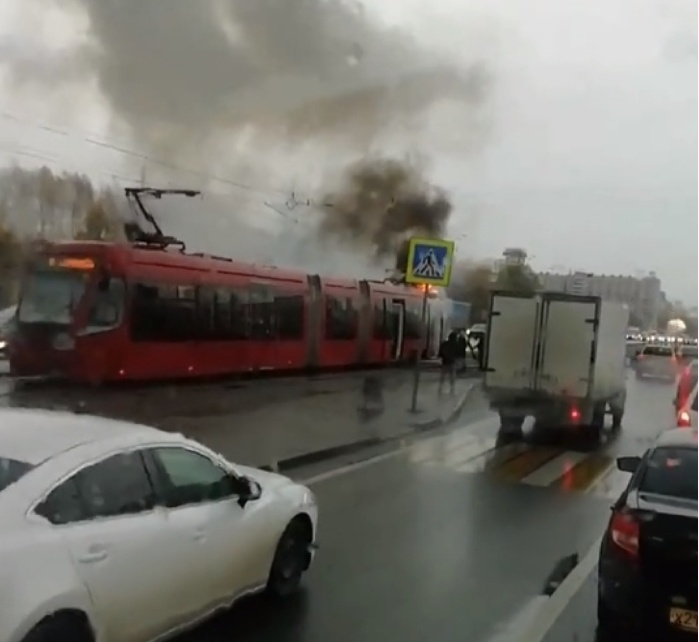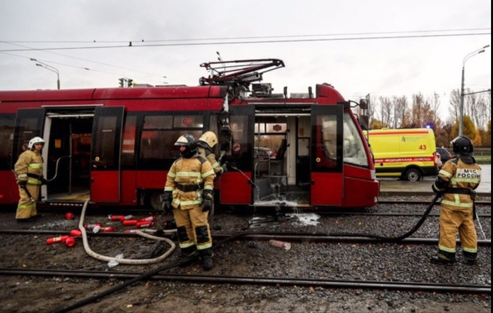 В Казани сгорел трамвай БКМ 84300М. Построенный в 2013 году. Заводской № 13. Источник: http://transphoto.ru/vehicle/312904