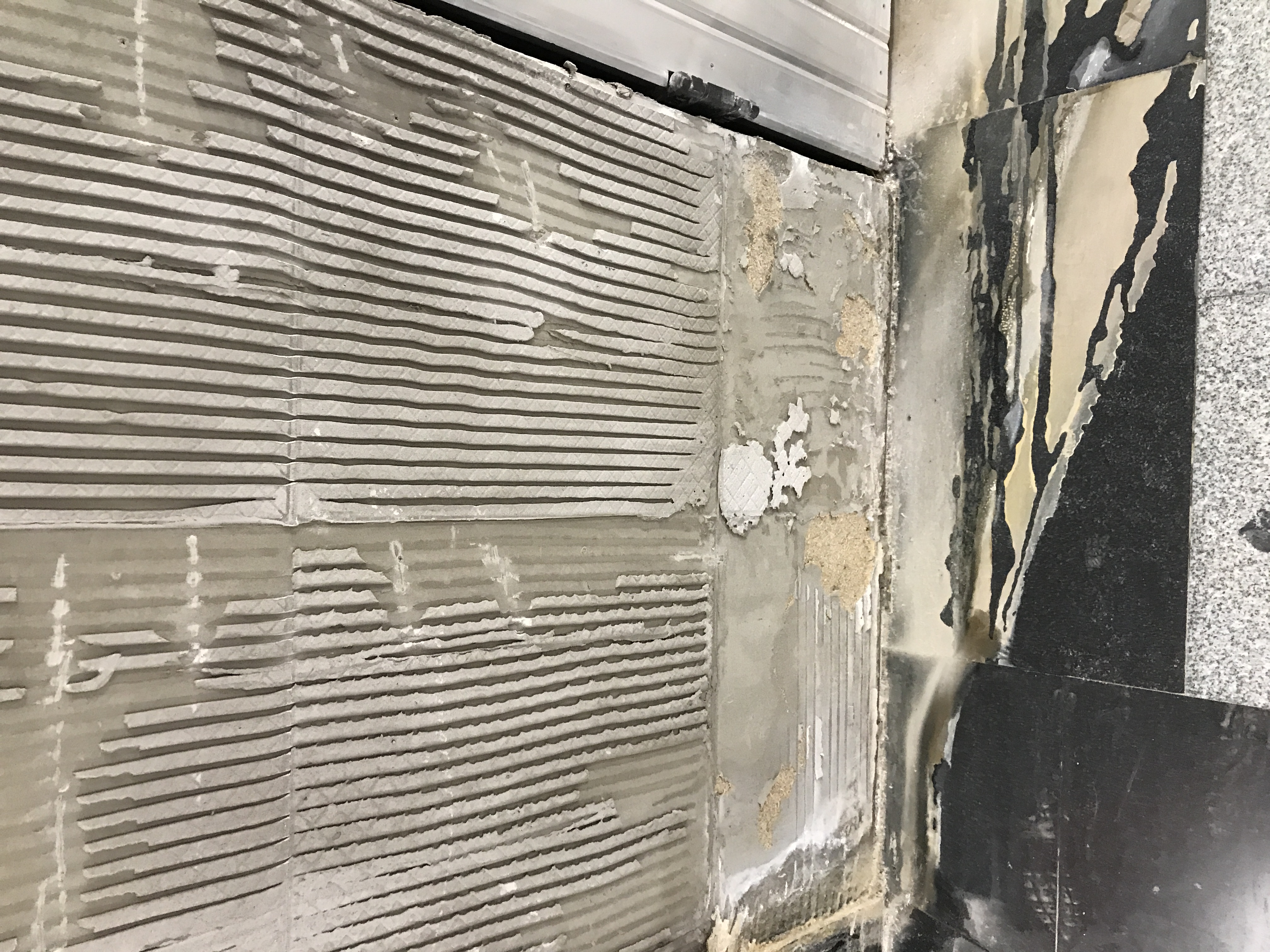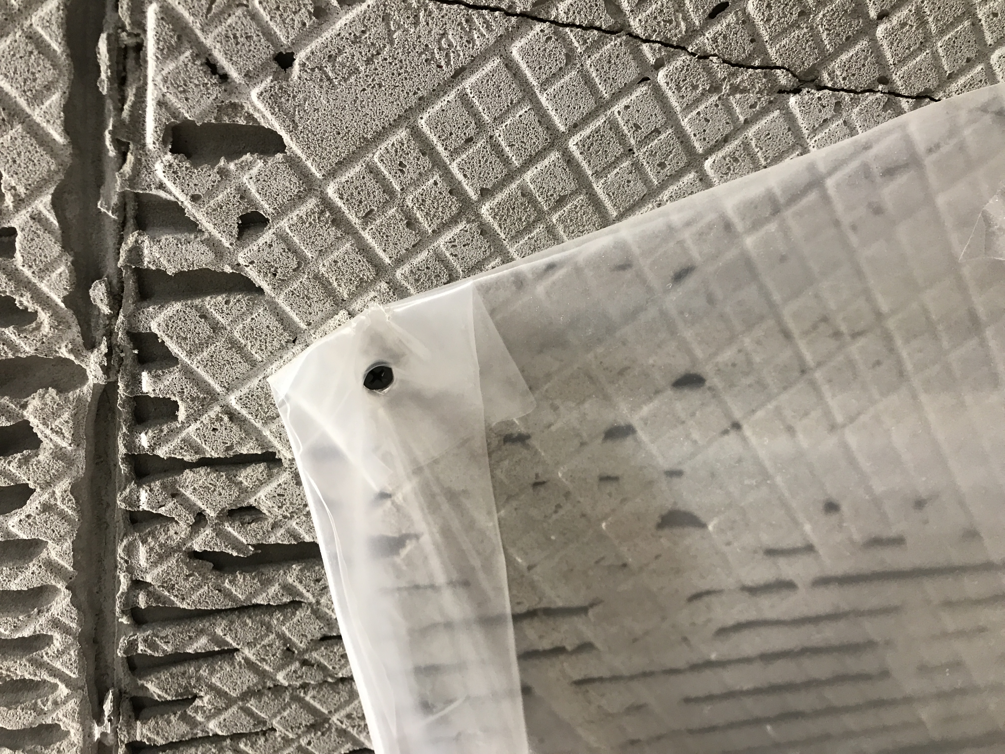 Там какую-то акриловую композицию в швы закачивали - в соседнем шве инъекторы видны. После отвердения композиция становится упругой (как каучук).