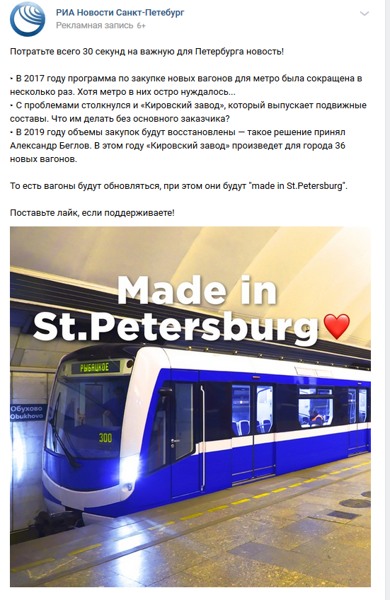 Вот, например, попалась рекламная запись во ВКонтакте: