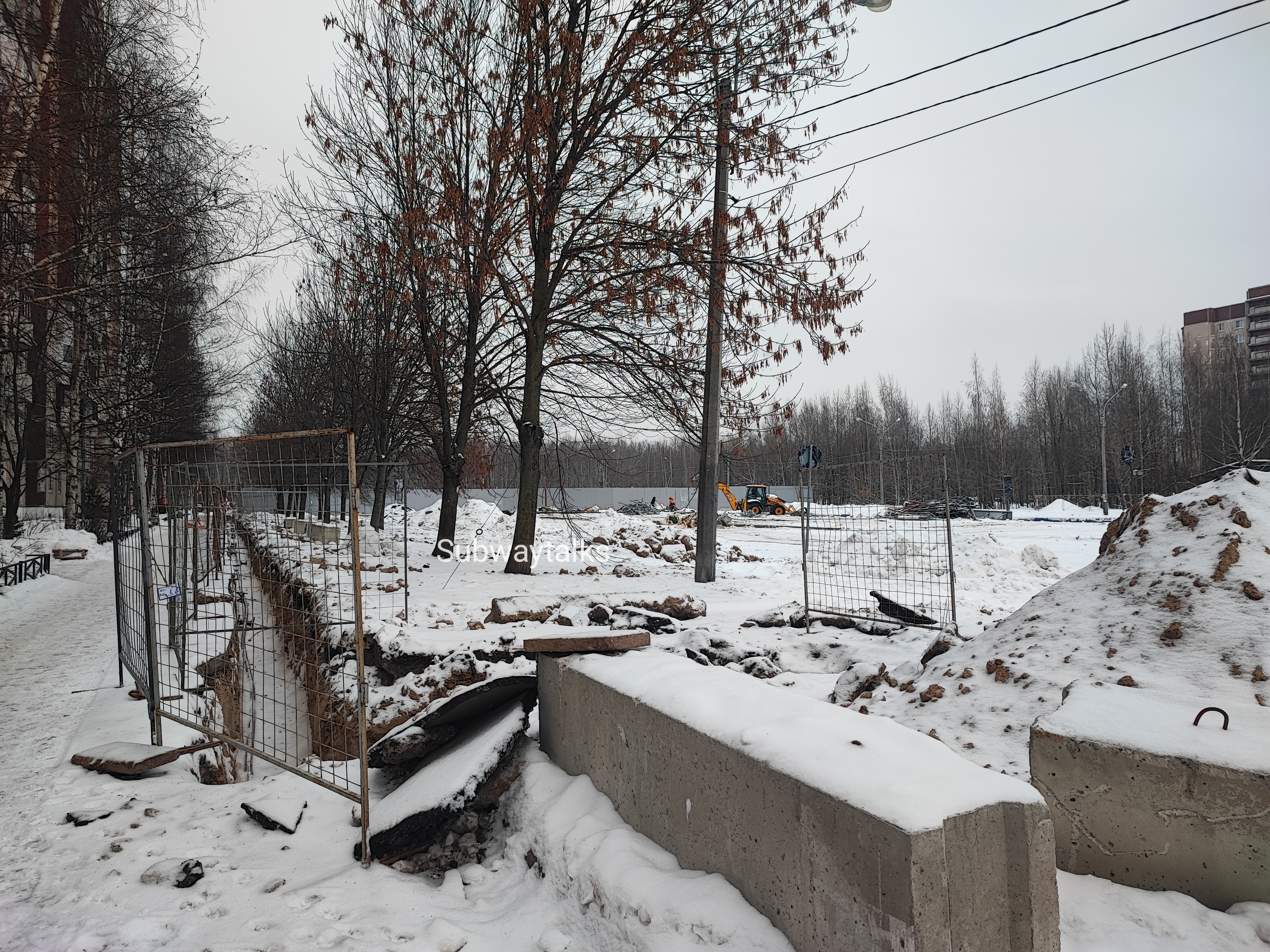 На сегодня обгородили две площадки. И траншеи для инженерных коммуникаций