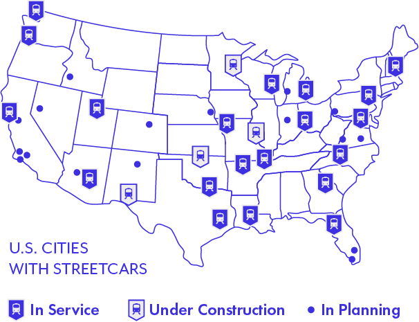 Насчет схемы: вижу строящийся трамвай в 4 городах гораздо меньше Питера и без исторической застройки на всю 300-миллионную Америку.