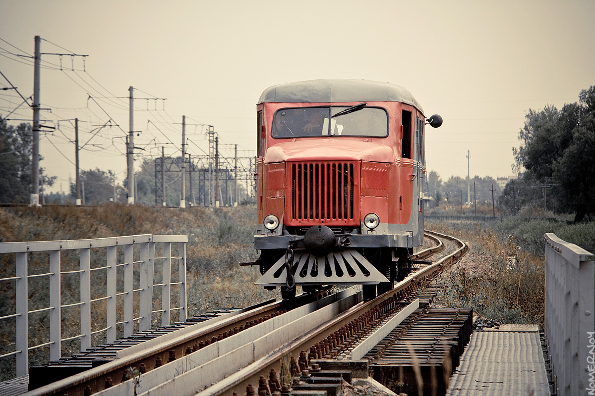 Энтузиасты с Тесовской узкоколейной дороги привезли кратковременно на южную трассу МОЖД свою автомотрису - необычное зрелище!