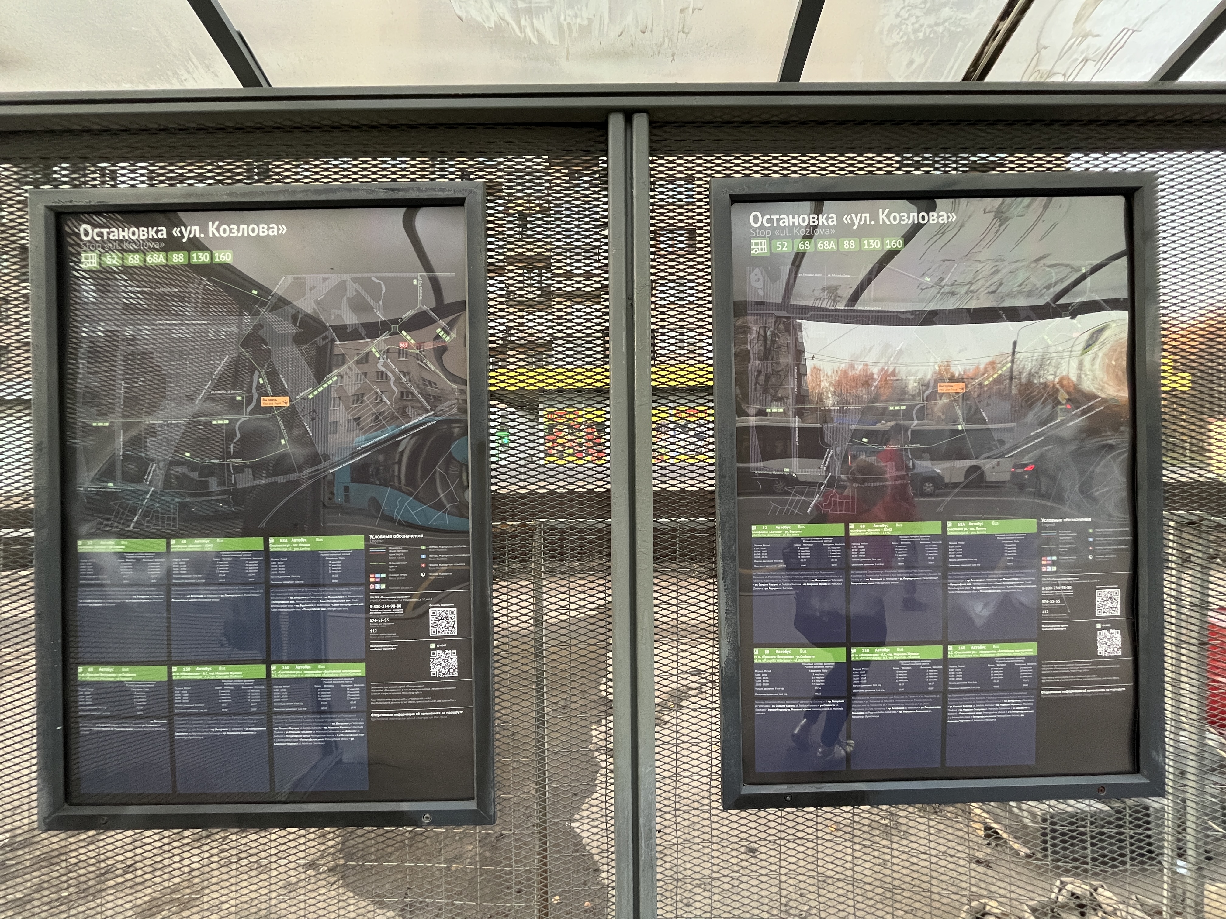 Тоже обратил внимание, что, несмотря на все заверения о переходе только на новые черные стенды, старые аншлаги всё-таки не демонтируют, а обновляют. Но на моих улицах они не дополняют друг друга, а дублируют. И там, и там перечислены все ходящие через остановку маршруты.