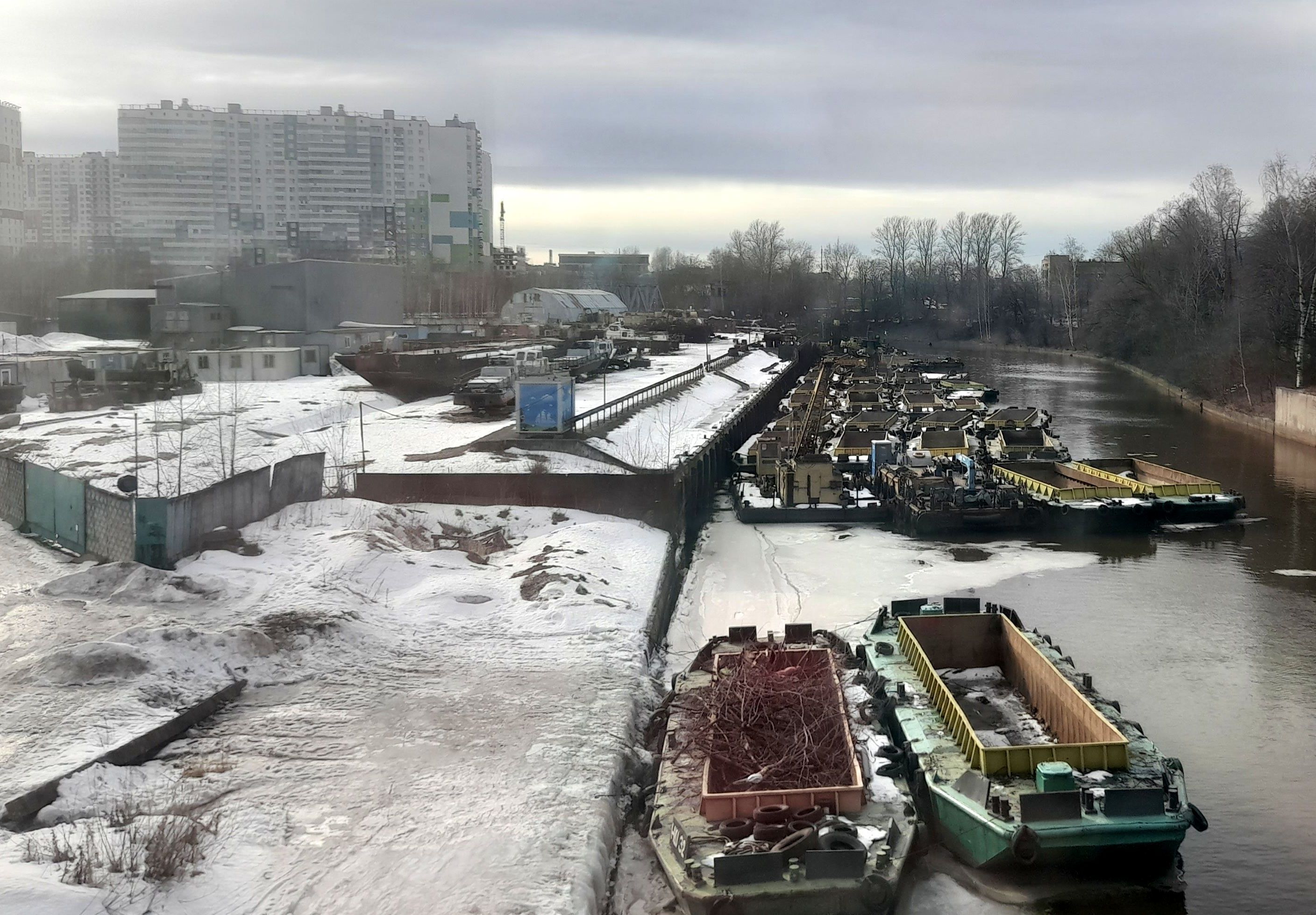 В отличие от Пупышевской электрички, которая назначается уже в середине весны, эта начала ходить ещё пока сугробы были, и в Полюстрово видно, какие пути используются (то есть, почищены). Я думал, там только три пути всего и используется, но на самом деле больше и даже какие-то подъездные пути ещё. Единственное что, после вырубки деревьев и кустов вдоль ж/д атмосферность немного уже не та. Раньше северная горловина Полюстрово выглядела как лабиринт из деревьев и кустов. Но промзону видно. Самый интересный вид теперь, наверное -- сразу после выезда из Полюстрово на жилой комплекс, там на насыпи явно не помешала бы платформа :)