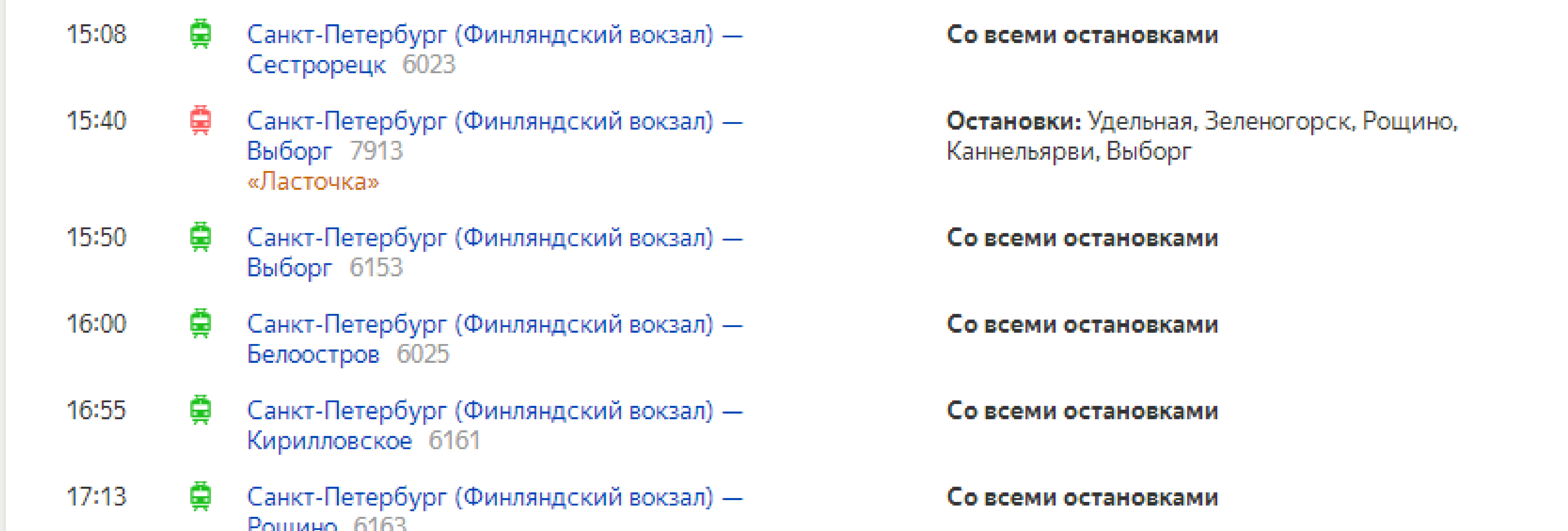 Но билеты купить можно между любыми станциями, тут почему-то нет такого косяка, как на круговых через Белоостров.