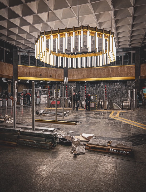 Над эскалаторами гранит вместо металлопанелей нелепой расцветки, установленных при открытии вокзала.