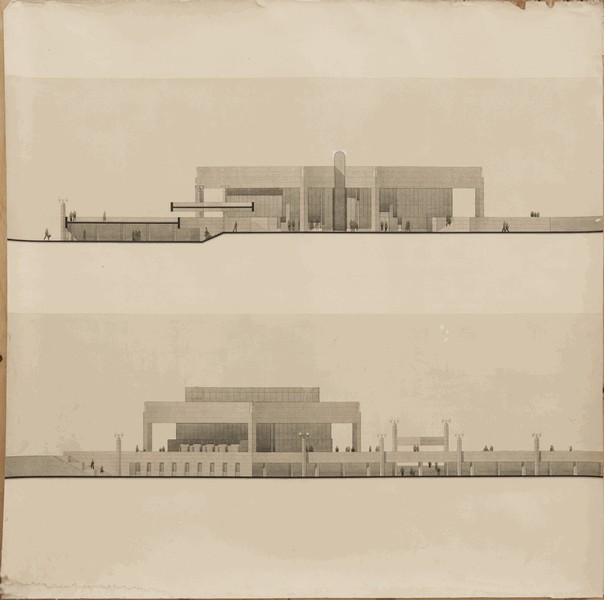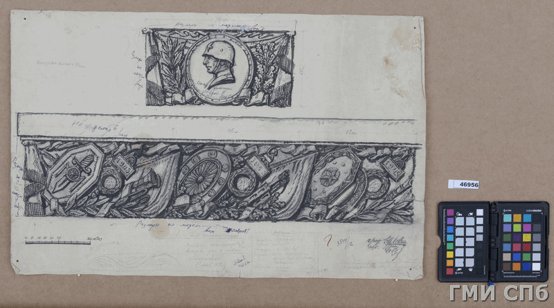 Эскизы мозаики в торце, а также вестибюля снаружи