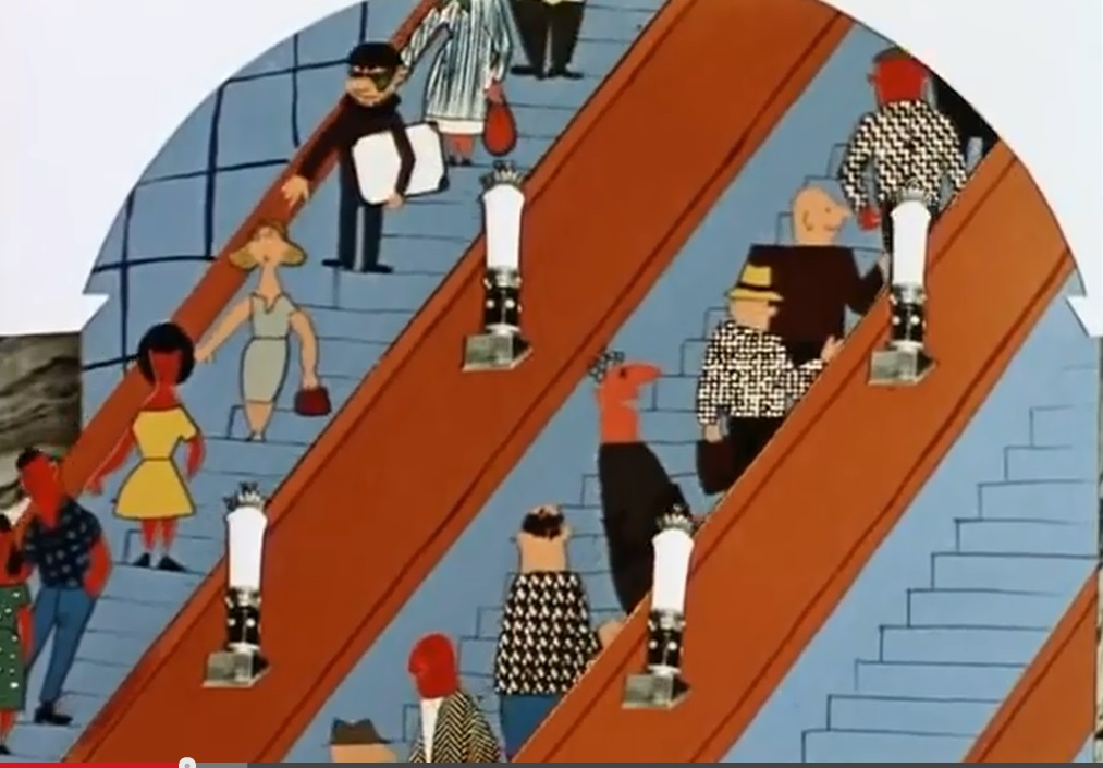 Обратите внимание, что в мультфильме на балюстрадах эскалаторов использованы фото настоящих торшеров.