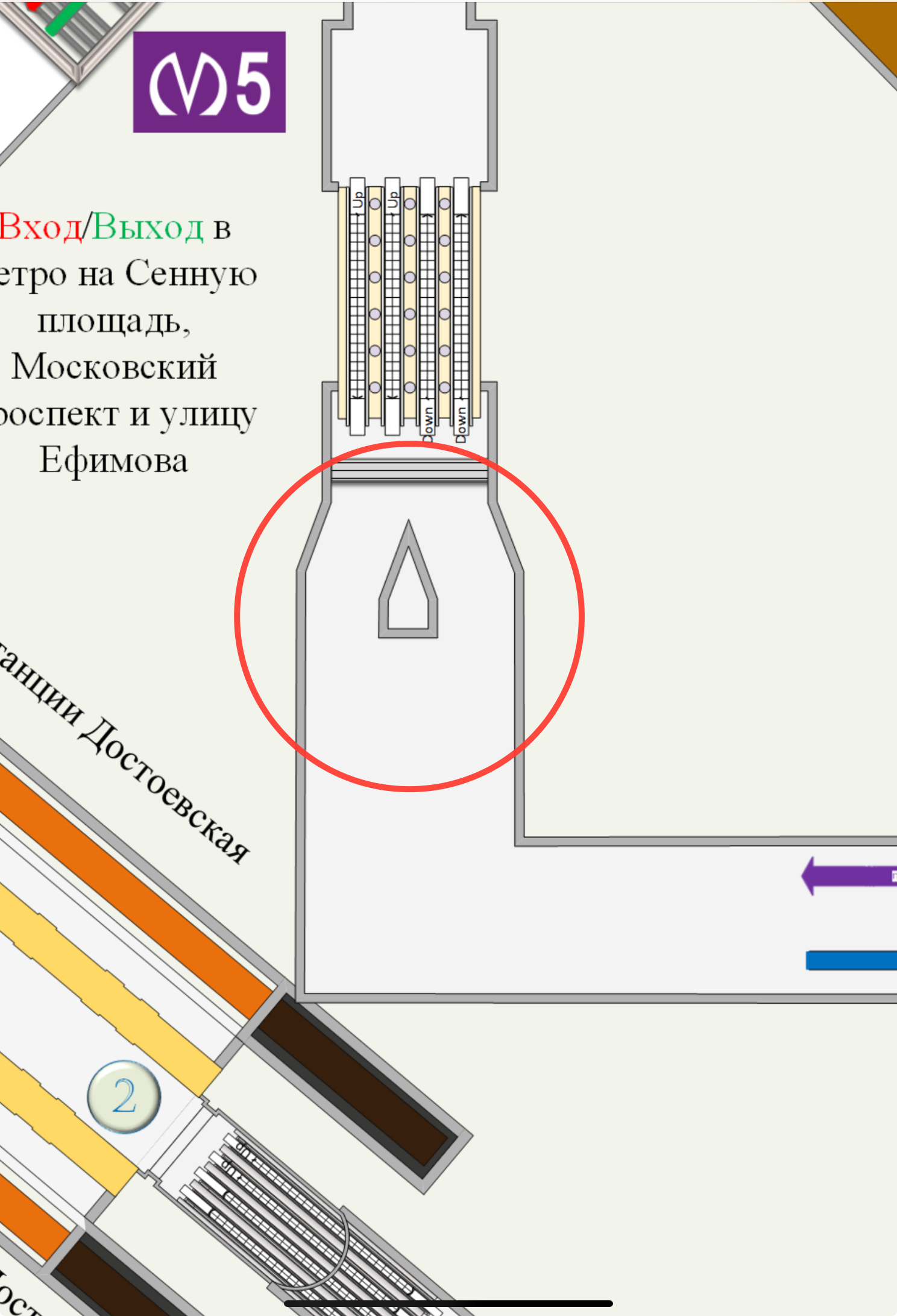 Колонна и лестница, почему то уехали вплотную к эскалаторам, а должны быть сразу за поворотом.