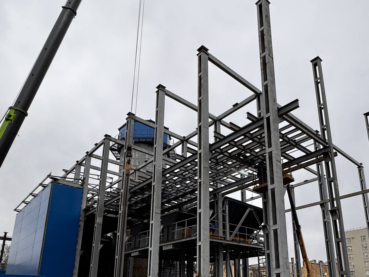 Продолжаются работы на строительной площадке ствола шахты №5 Кировско-Выборгской линии Петербургского метрополитена.