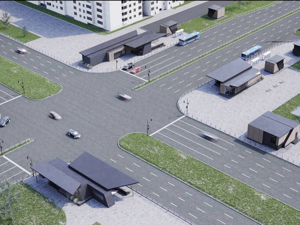 На рендерах автобус останавливается на остановке за забором.