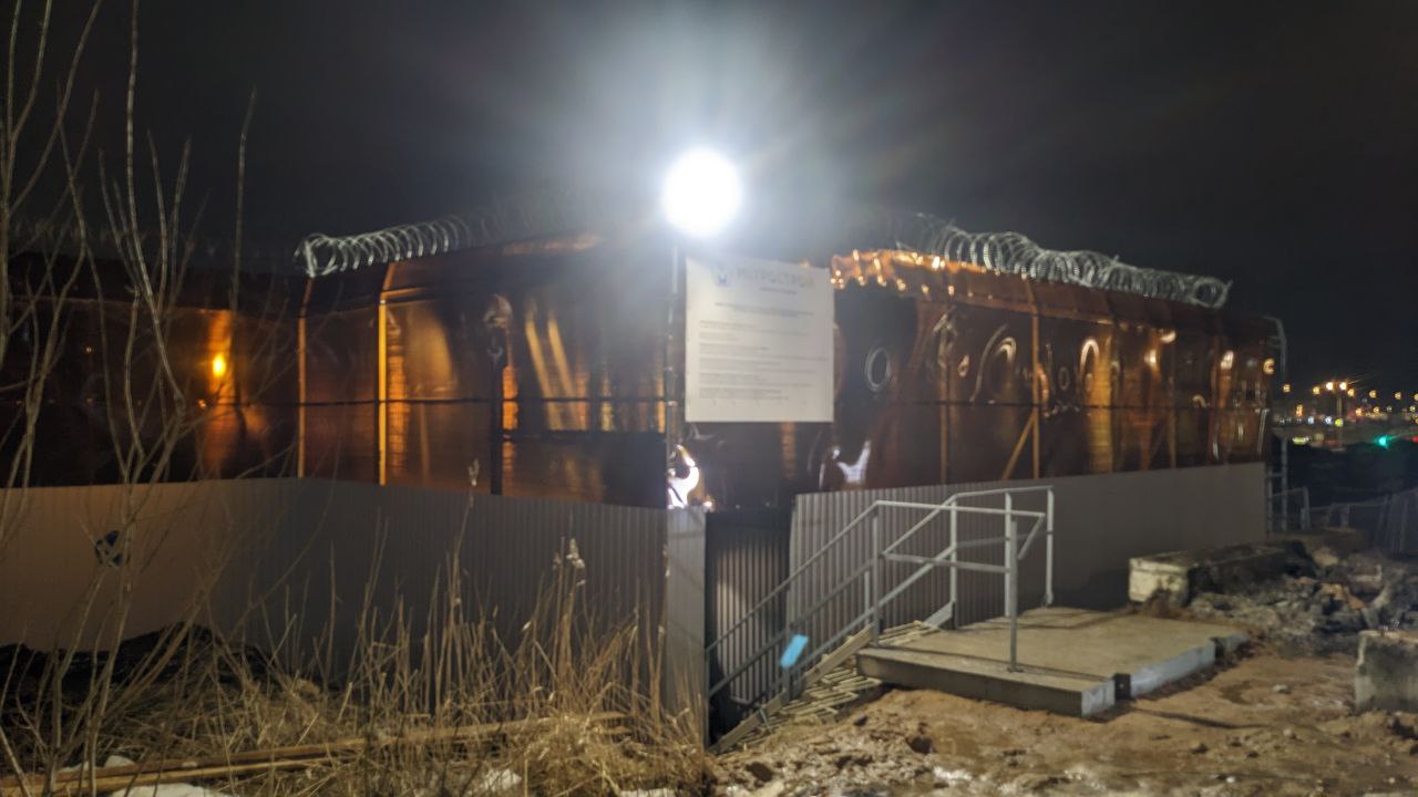 На Каменке со стороны входа в "Ленту" появилась инфо табличка, проходная и маркировка забора в логотип Метростроя.