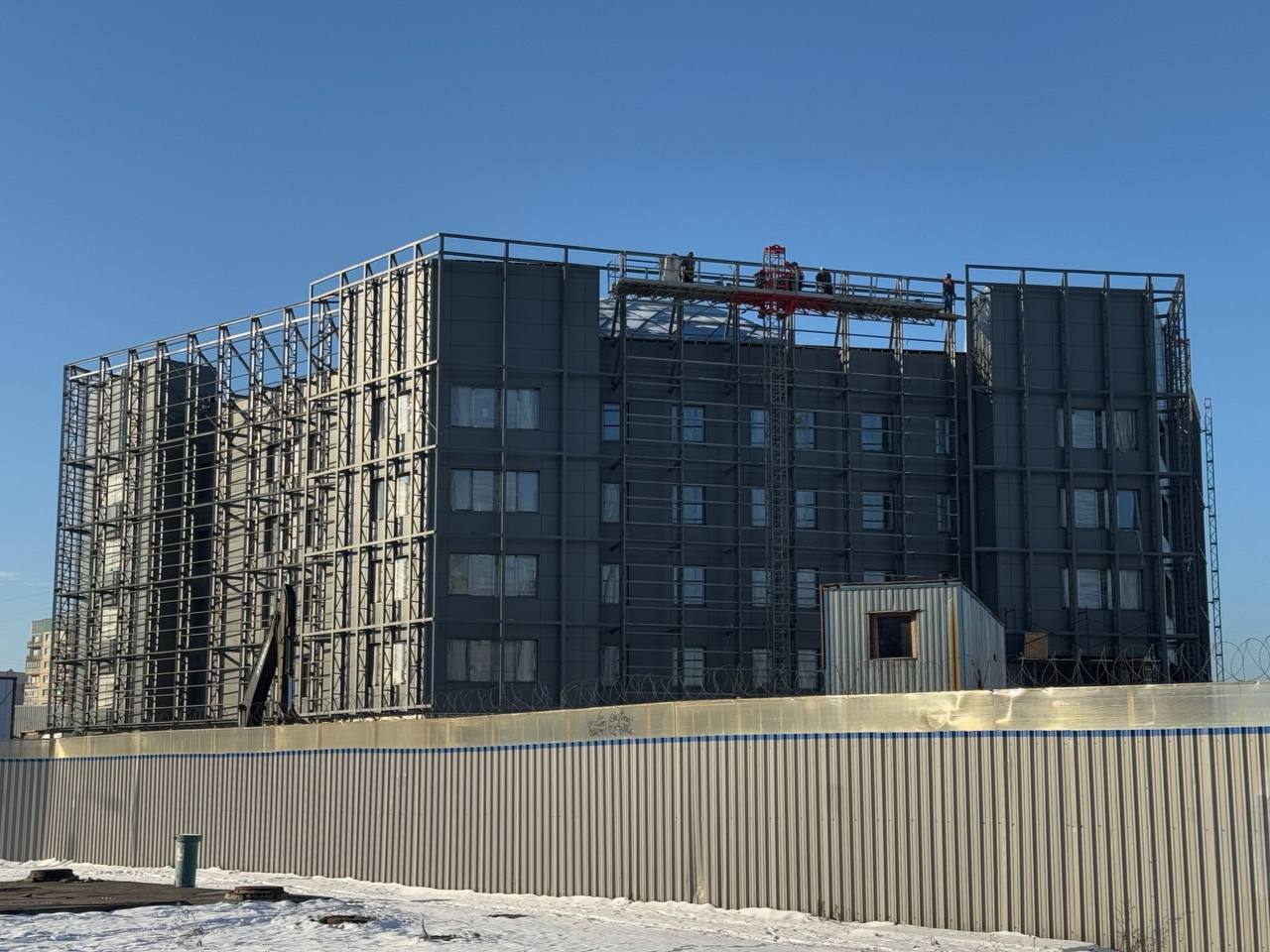 На данный момент завершаются работы по монтажу вентилируемого фасада. Также продолжается установка фальш-фасада, что завершит формирование архитектурного ансамбля станции.