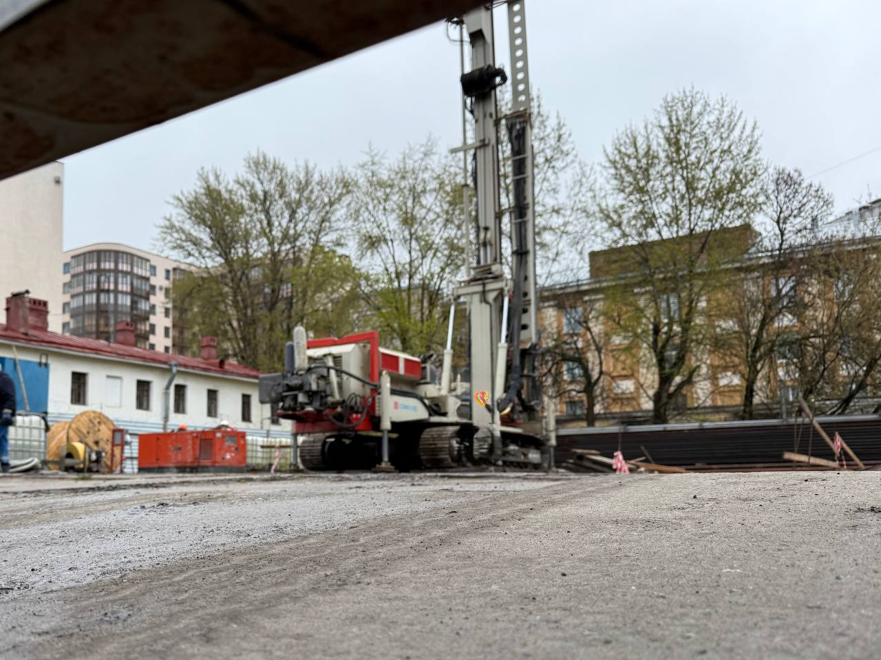 Продолжаются подготовительные работы на строительной площадке шахты № 853 участка Красносельско-Калининской линии от станции «Путиловская» до станции «Каретная».