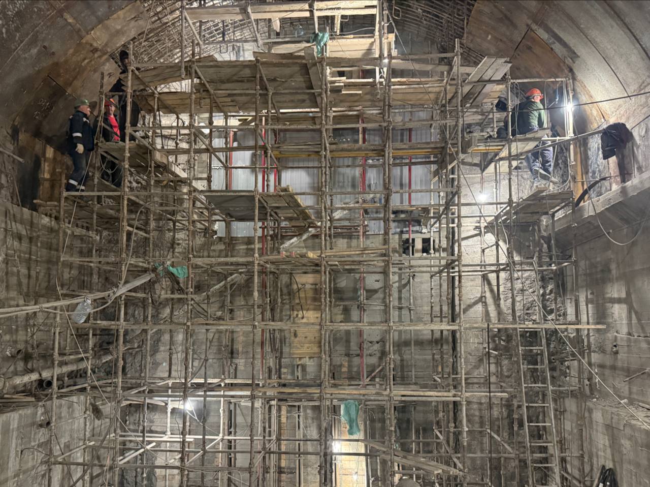На строительстве вестибюля станции «Путиловская» Красносельско-Калининской линии Петербургского метрополитена продолжаются работы.