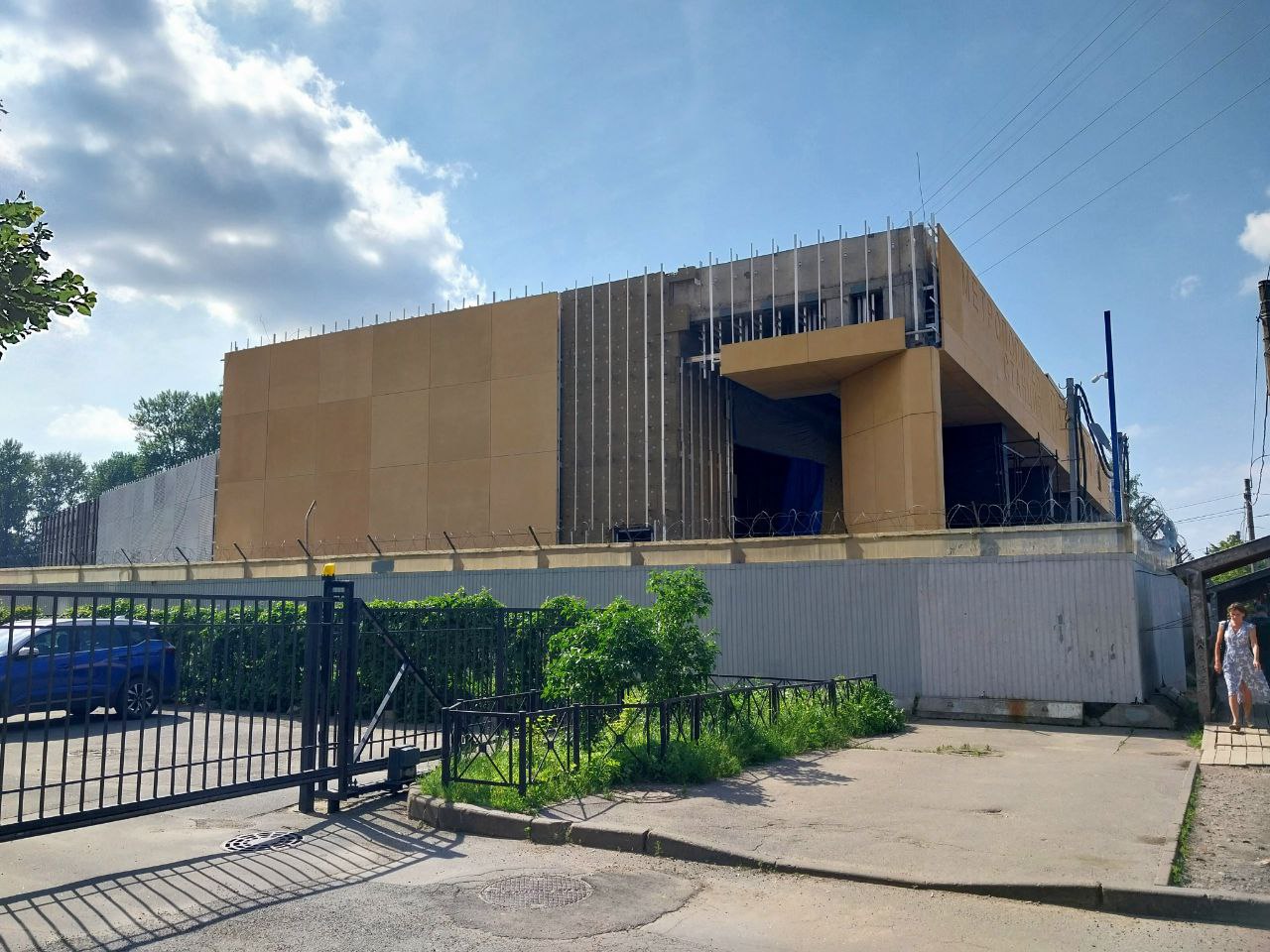 Приступили к установке плит из стеклофибробетона серого цвета на стороне фасада выходящего к улице маршала Говорова.