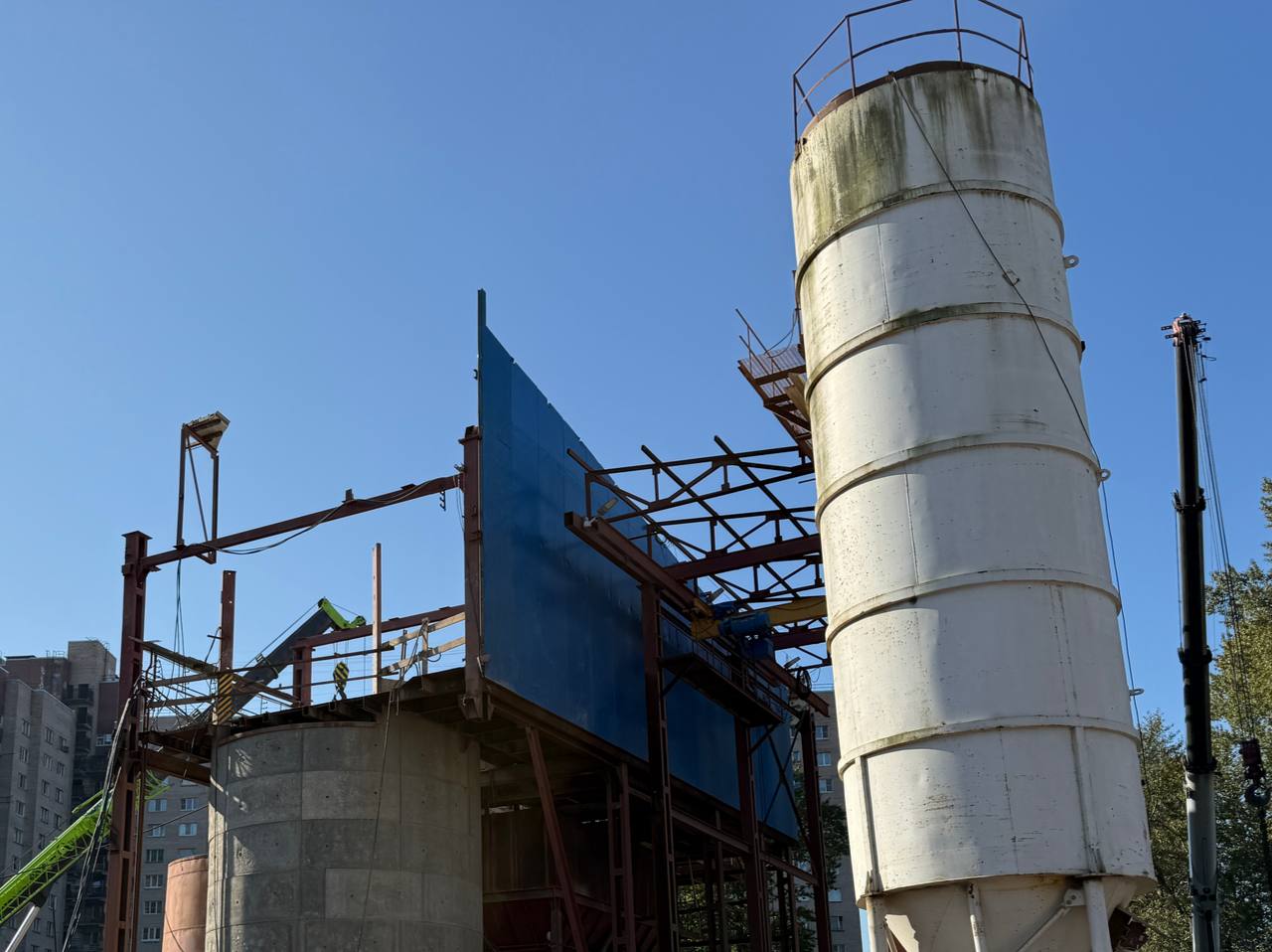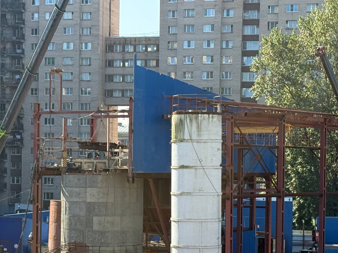 На строительной площадке шахты № 844 Красносельско-Калининской линии Петербургского метрополитена идут работы по демонтажу горного комплекса и сооружению верхнего вентиляционного узла. Через эту шахту строили пересадочный узел между «Путиловской» и «Кировским заводом».