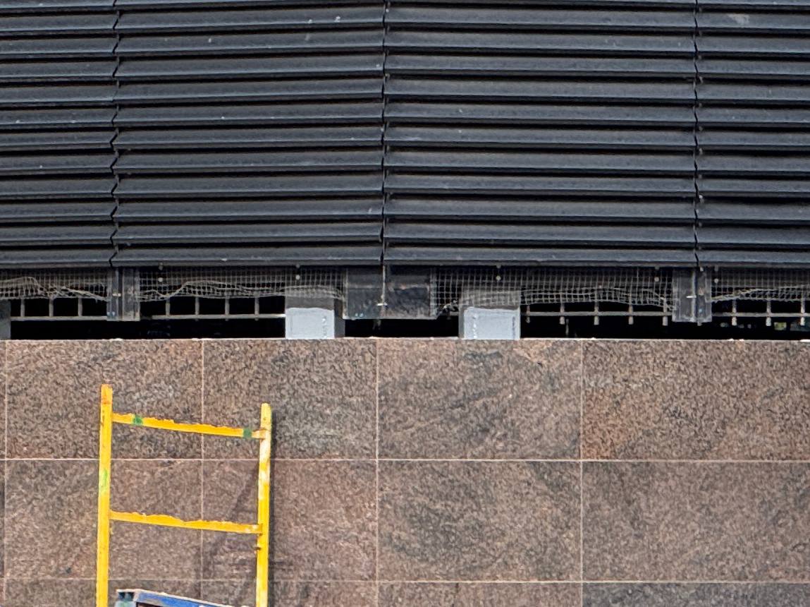На строительной площадке вентиляционной шахты №841 Красносельско-Калининской линии Петербургского метрополитена идут работы по облицовке цоколя вентиляционного павильона, а также продолжаются работы по благоустройству прилегающей территории.