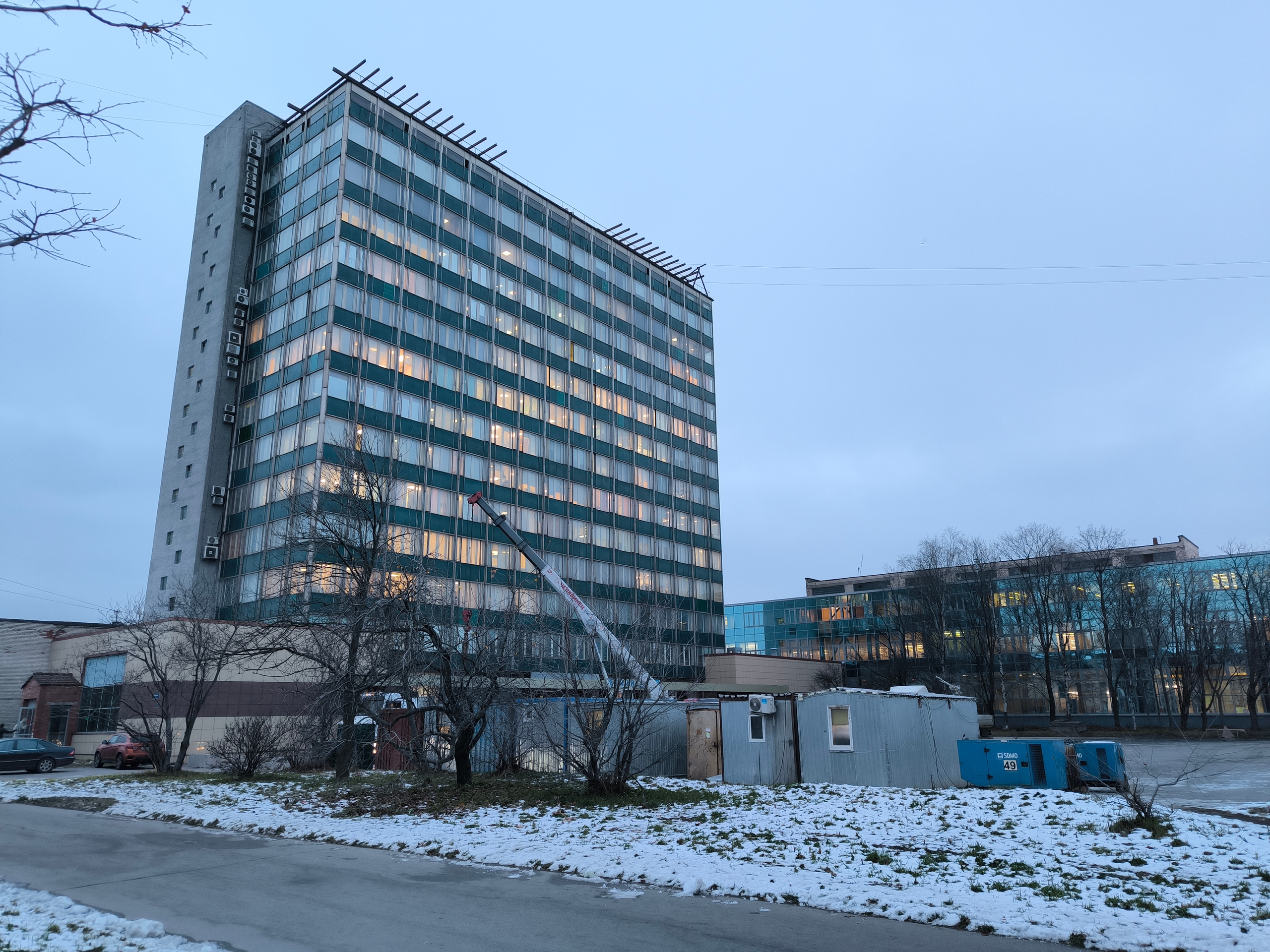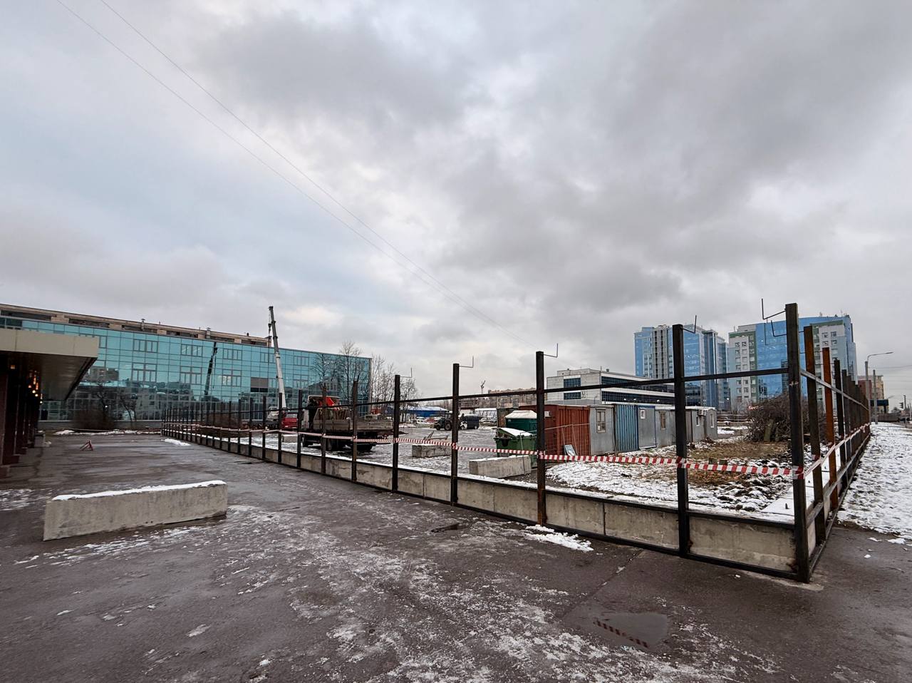 На парковке ЦНИИСЭТа прямо сейчас возводят бытовочный городок