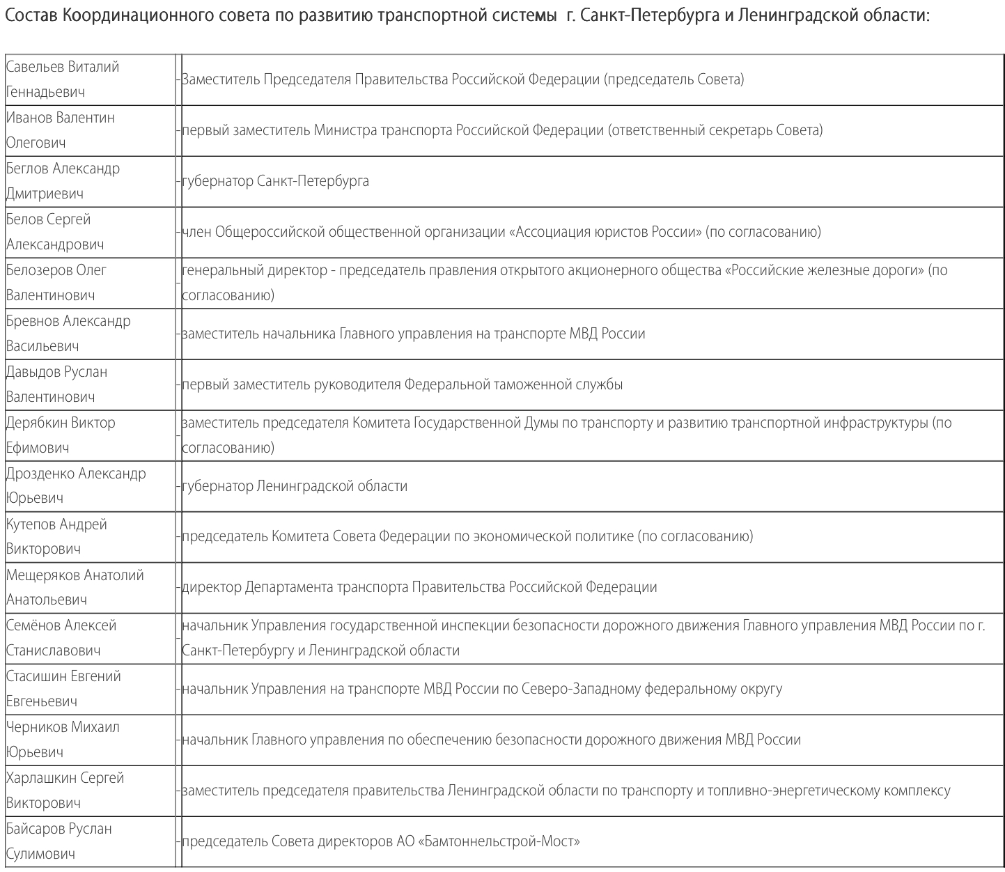 Есть у нас такой оргАн Координационный совет по развитию транспортной системы Санкт-Петербурга и Ленинградской области