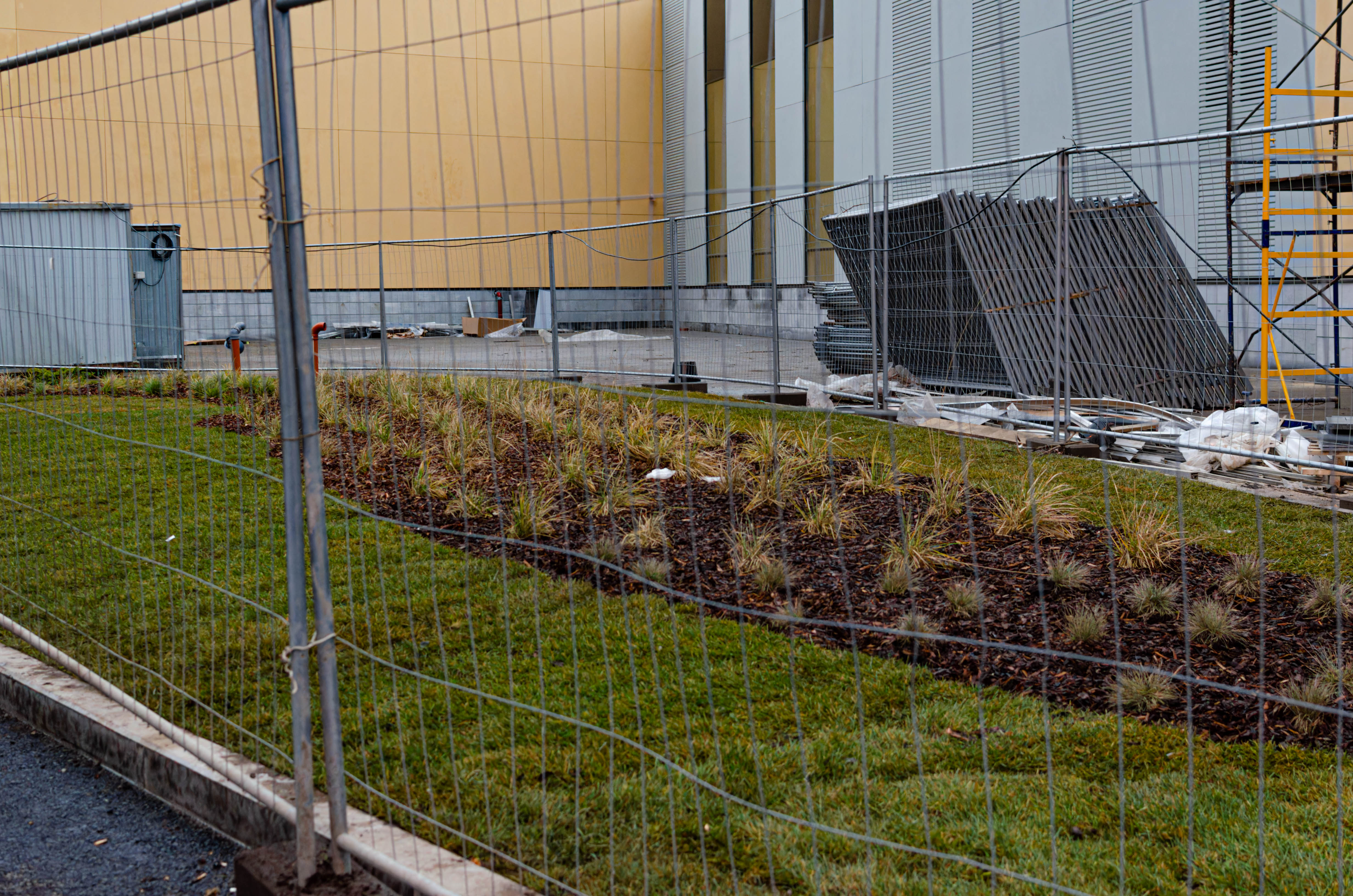 Недавно завершили создание нового проезда в сторону задней стороны ДК Газа, там, где я испачкал свои кроссовки, теперь ровный газон:). завершают отделку задней служебной части вестибюля и благоустройства, так же завершают монтаж куботы во входной группе вестибюля, и там же включили освещение. Кстати, как я понял, вестибюль снаружи уже полностью отделан.