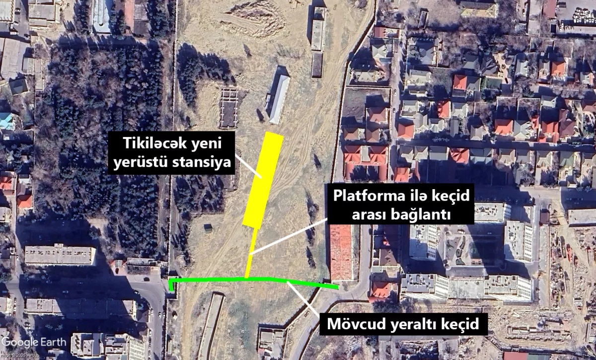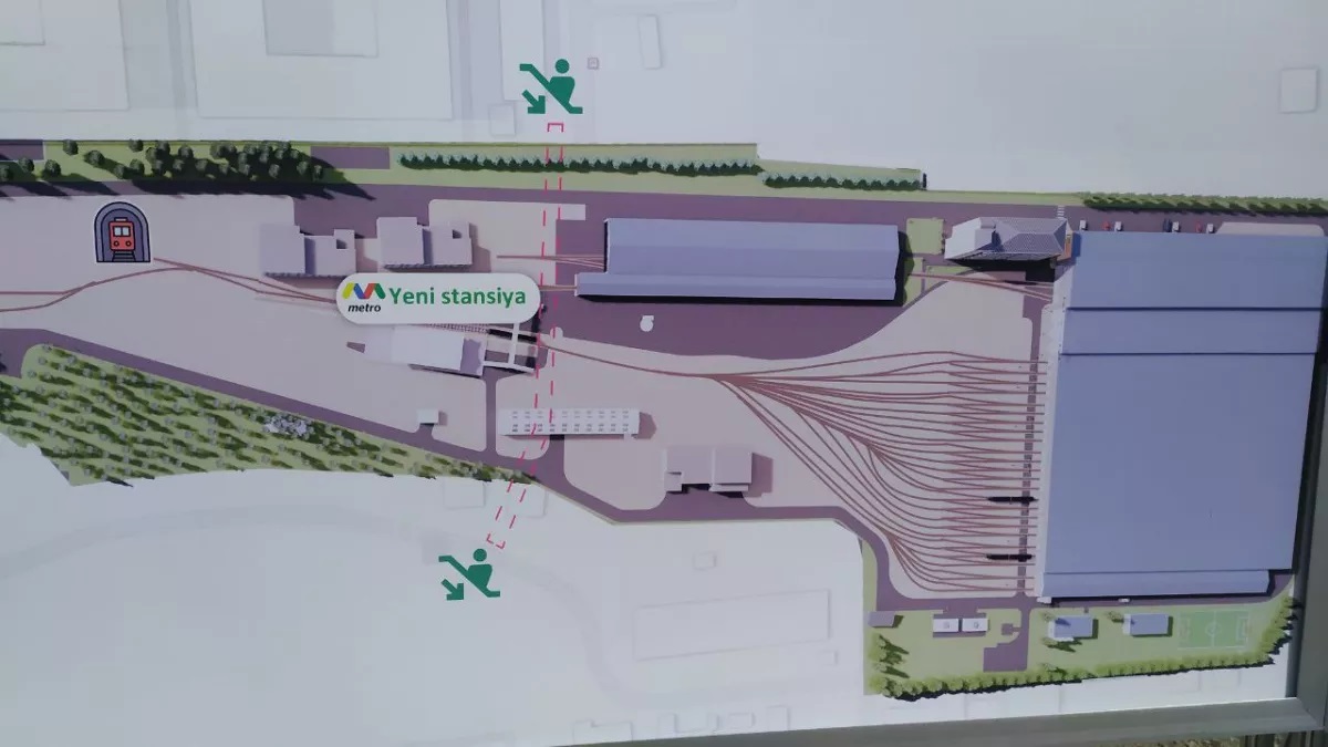 И вот теперь появилась ясность с такими хитрыми пешеходниками под парковыми путями депо. Оказывается будет наземная станция! Показать бы кое-кому из транспортной администрации Петербурга, кто мою идею о наземной станции в ТЧ-8 критиковал. В Баку почему-то заморочились переделать исходный проект.