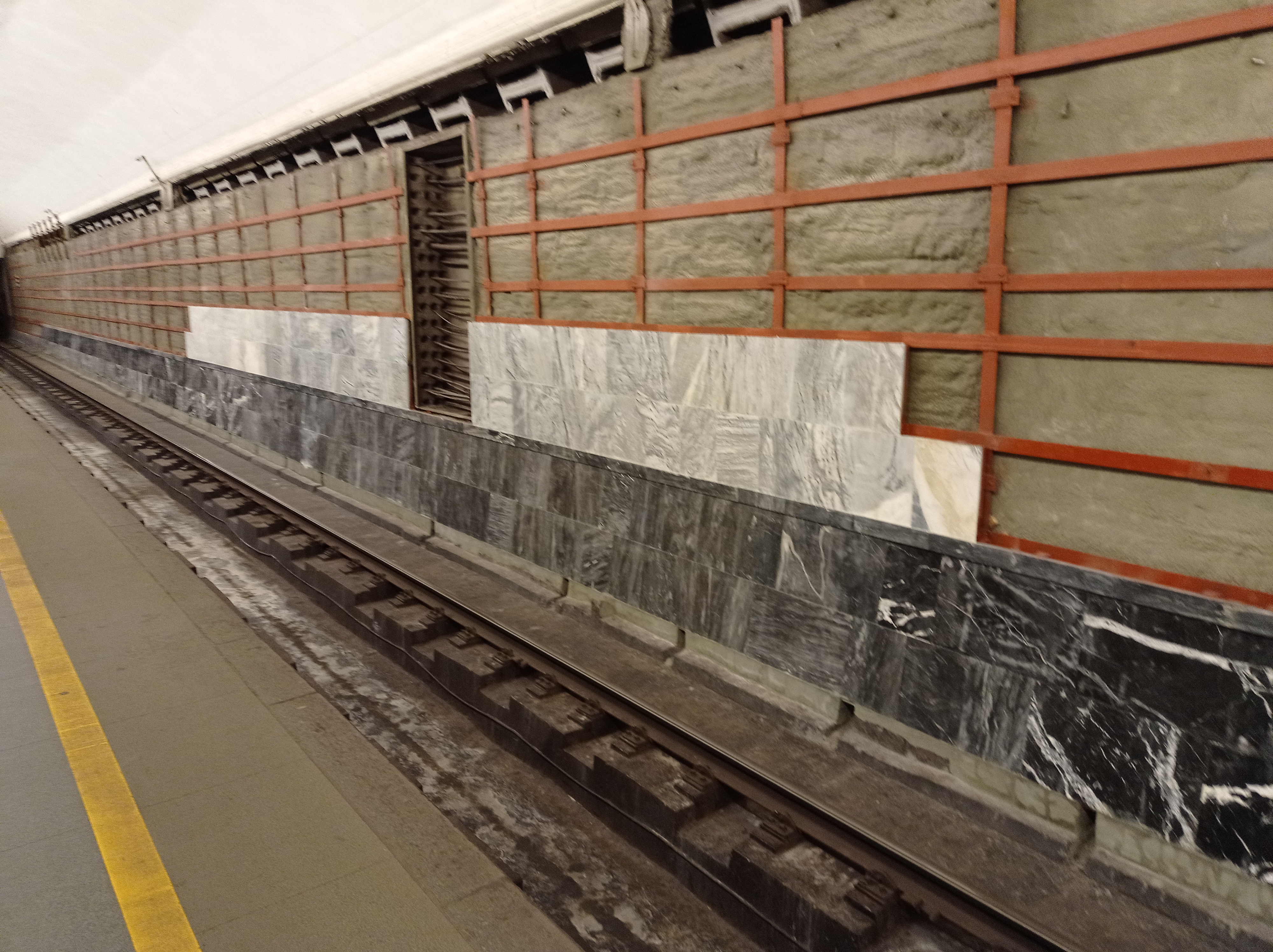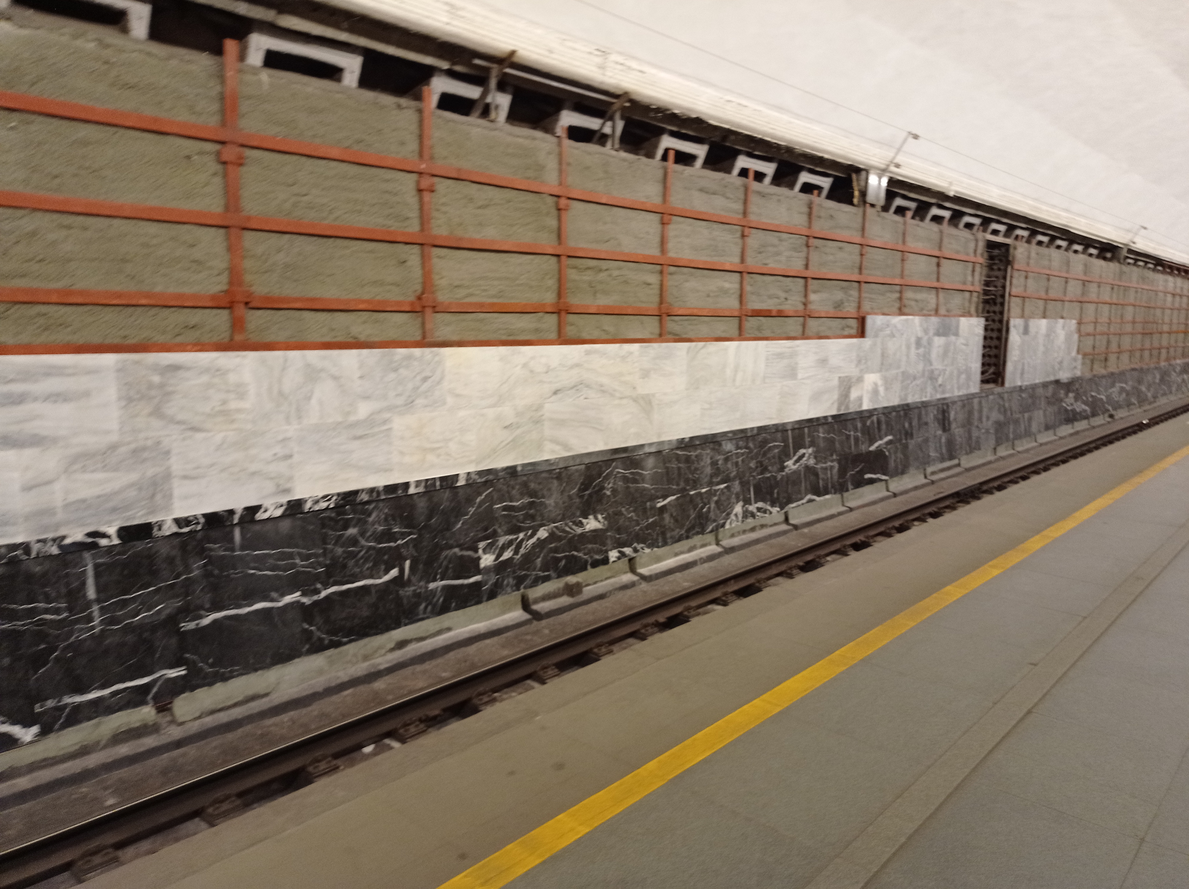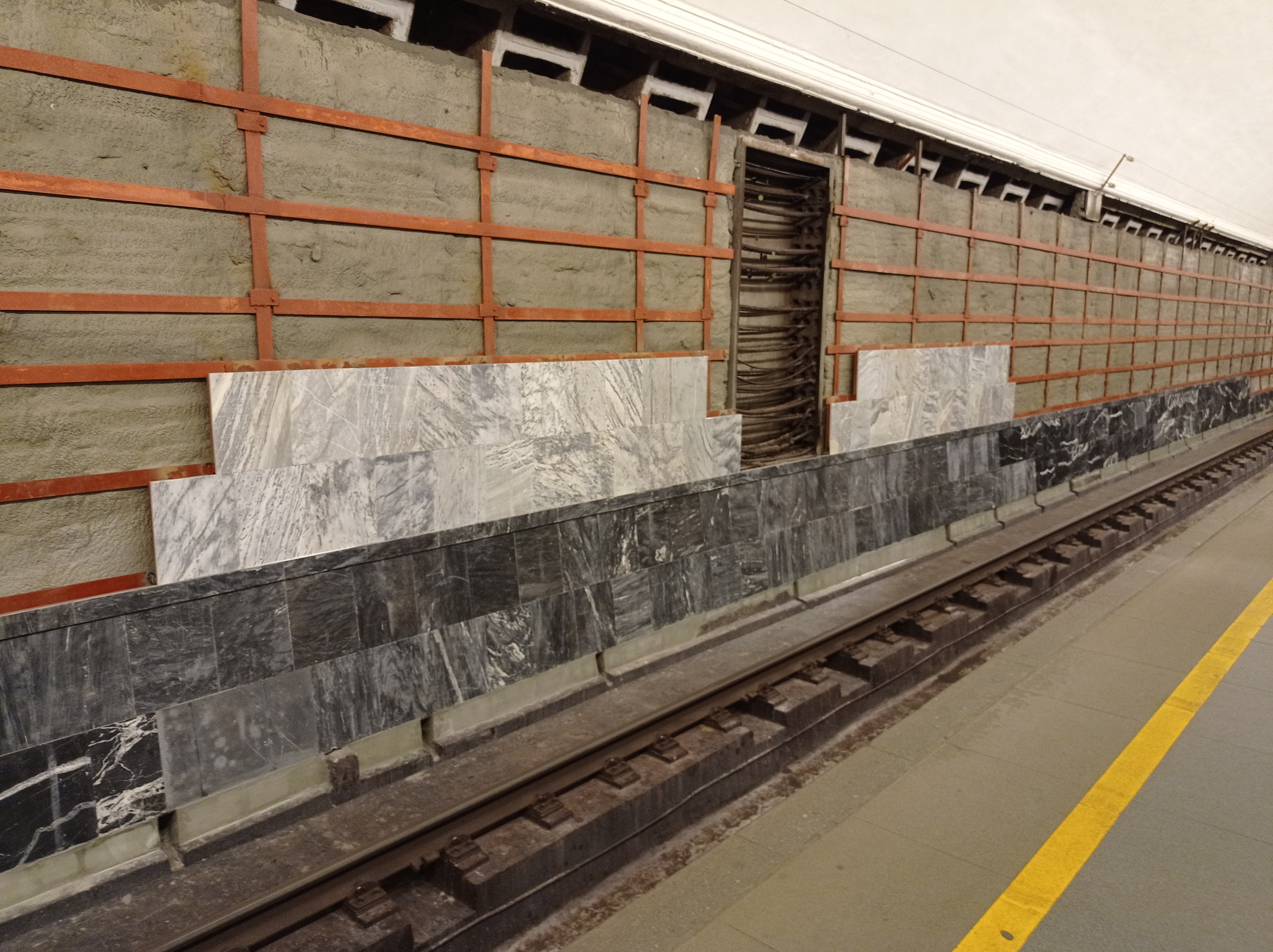 Состояние путевых стен станции на вчерашний день. С чего они решили на пол путевой стены класть белую плитку?