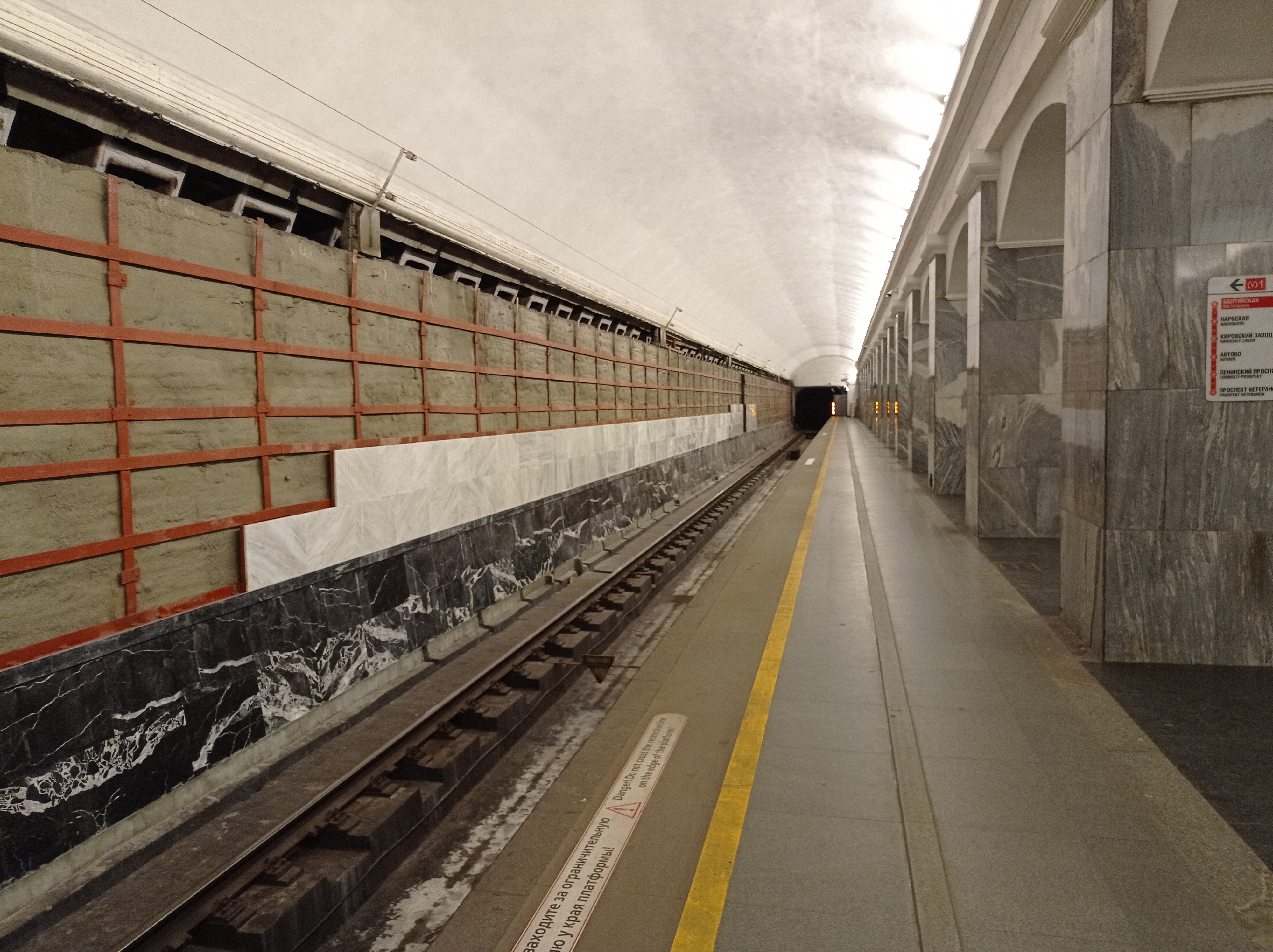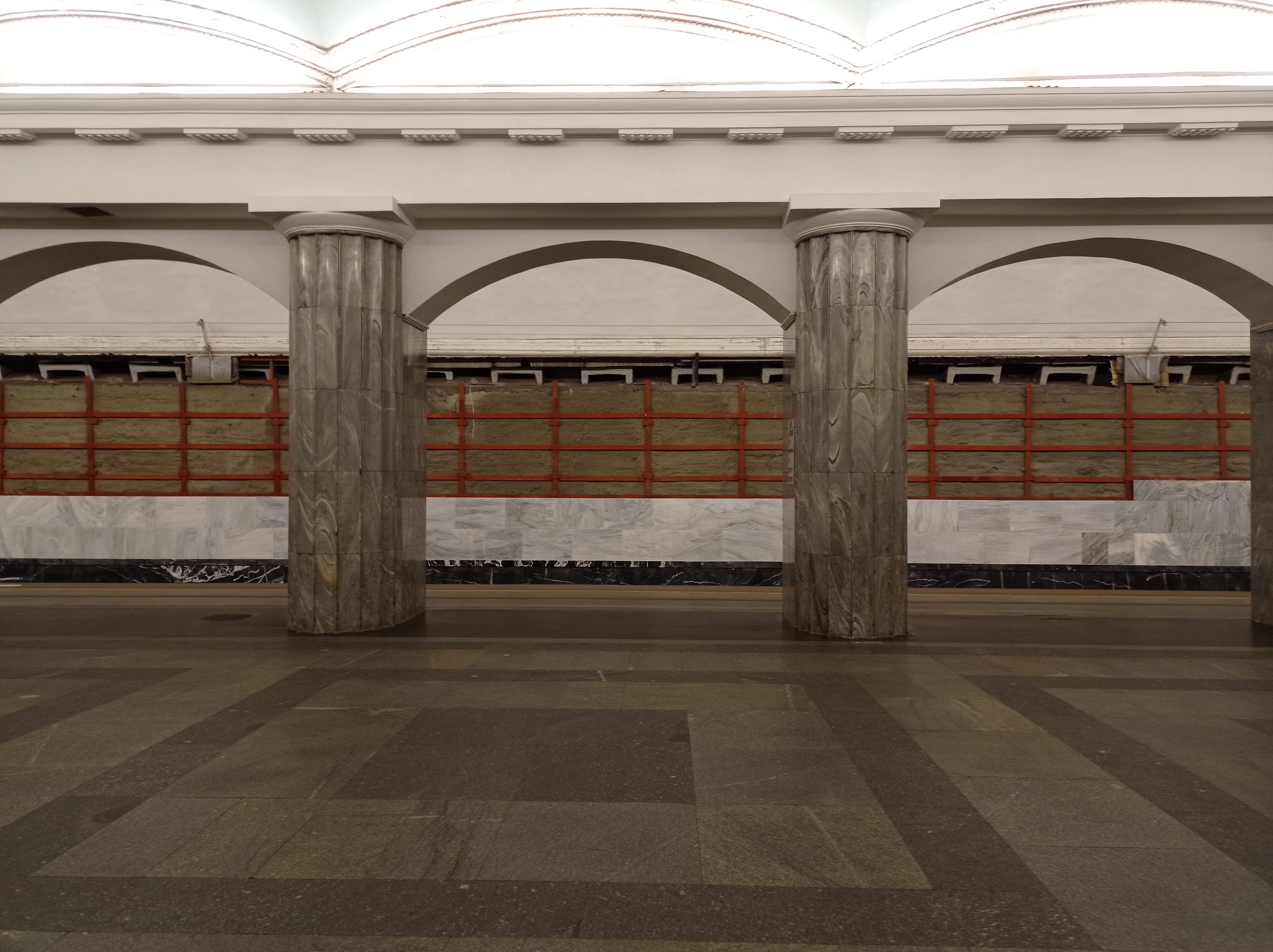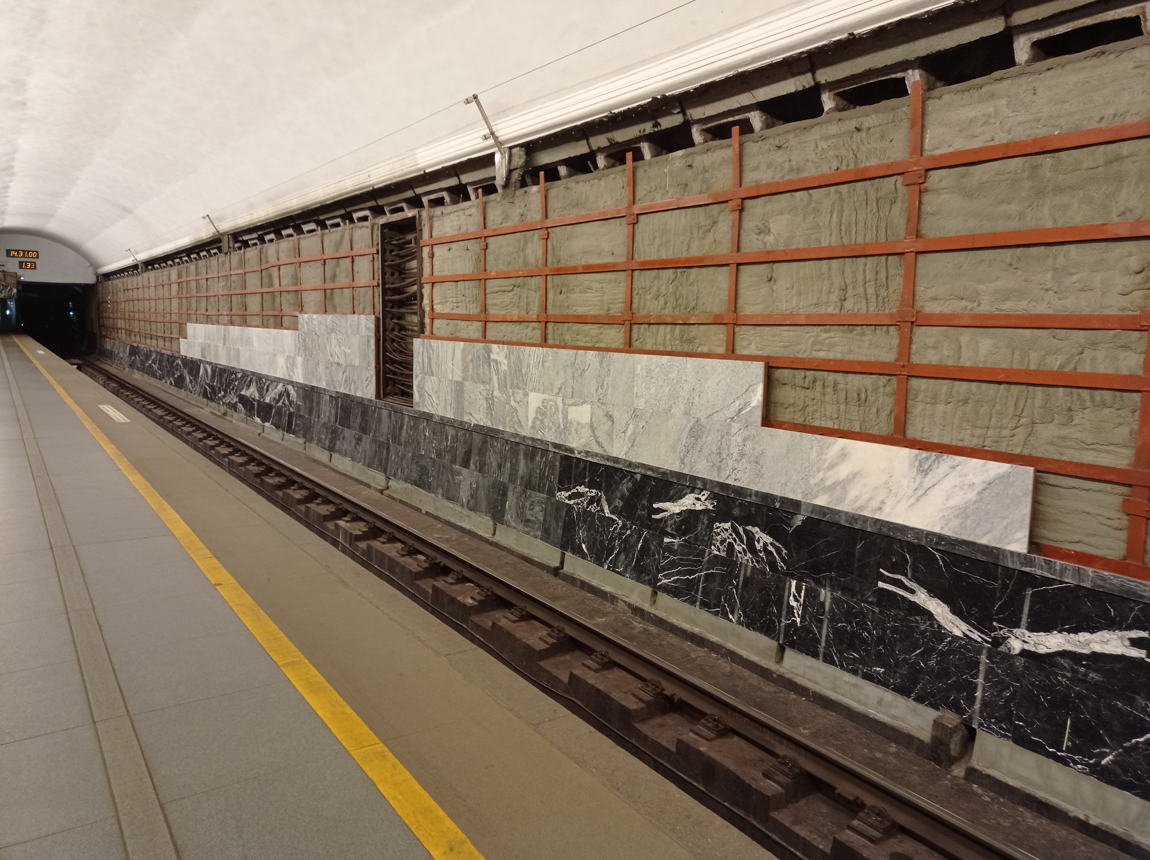 Состояние путевых стен станции на вчерашний день. С чего они решили на пол путевой стены класть белую плитку?