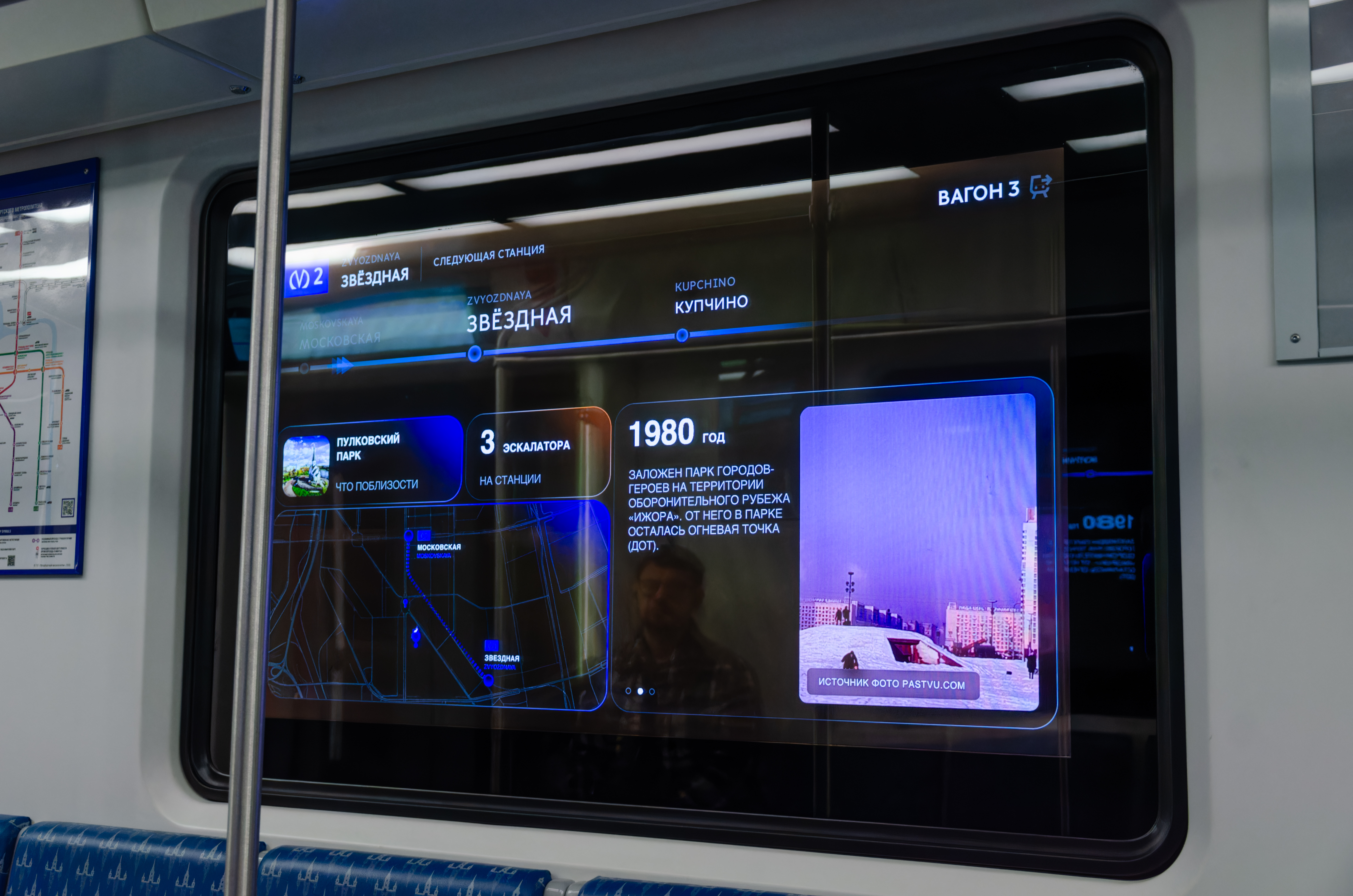 Ладно, спустя почти месяц после начала эксплуатации синих, я закину, как выглядят информационные табло в первом Балтийце (25087 - 25088). К слову, этот экран в окне снимут в начале июня в связи с проведением испытаний, как этот экран может эксплуатироваться на территории Петербургского метрополитена.