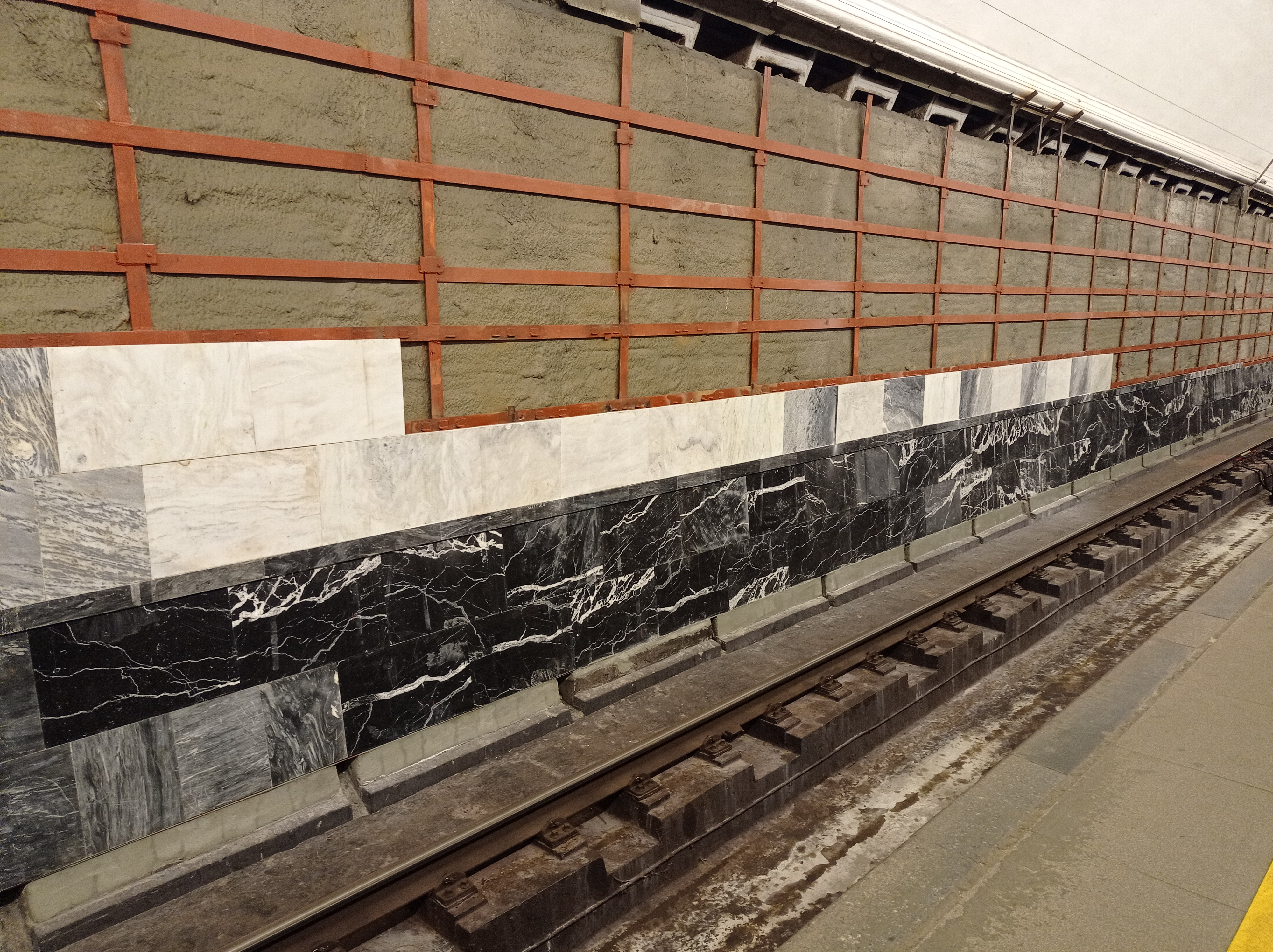 Состояние путевых стен станции на вчерашний день. С чего они решили на пол путевой стены класть белую плитку?