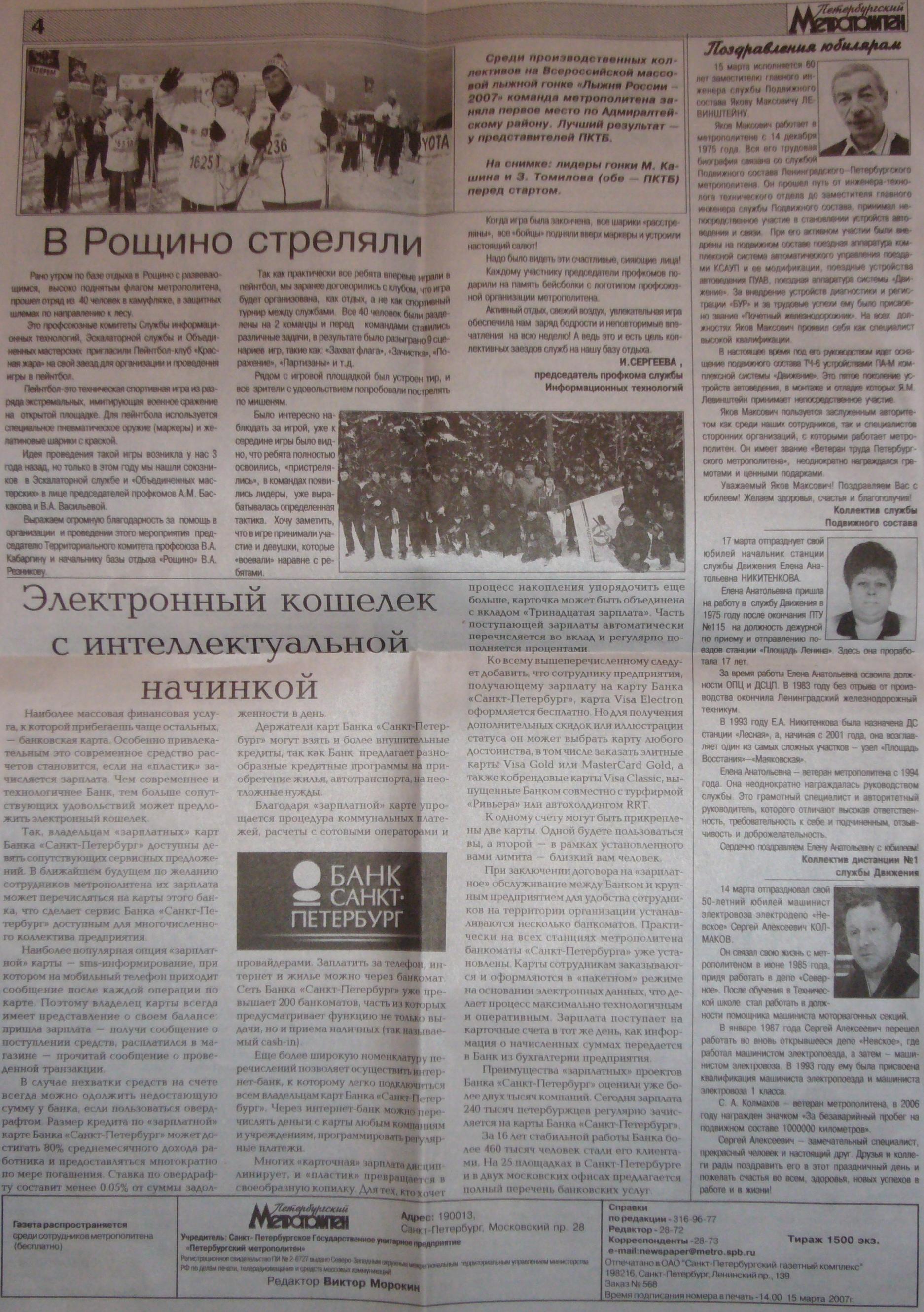 Мда, статья про банк "Санкт-Петербург" в газете Петербургского метрополитена, который пользуется "Пром-Строй" банком несколько странновато выглядит...