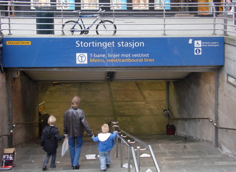 В центре города все линии метро соединяются в один общий тоннель, который недавно был превращён в кольцо. На фото - станция Stortinget.