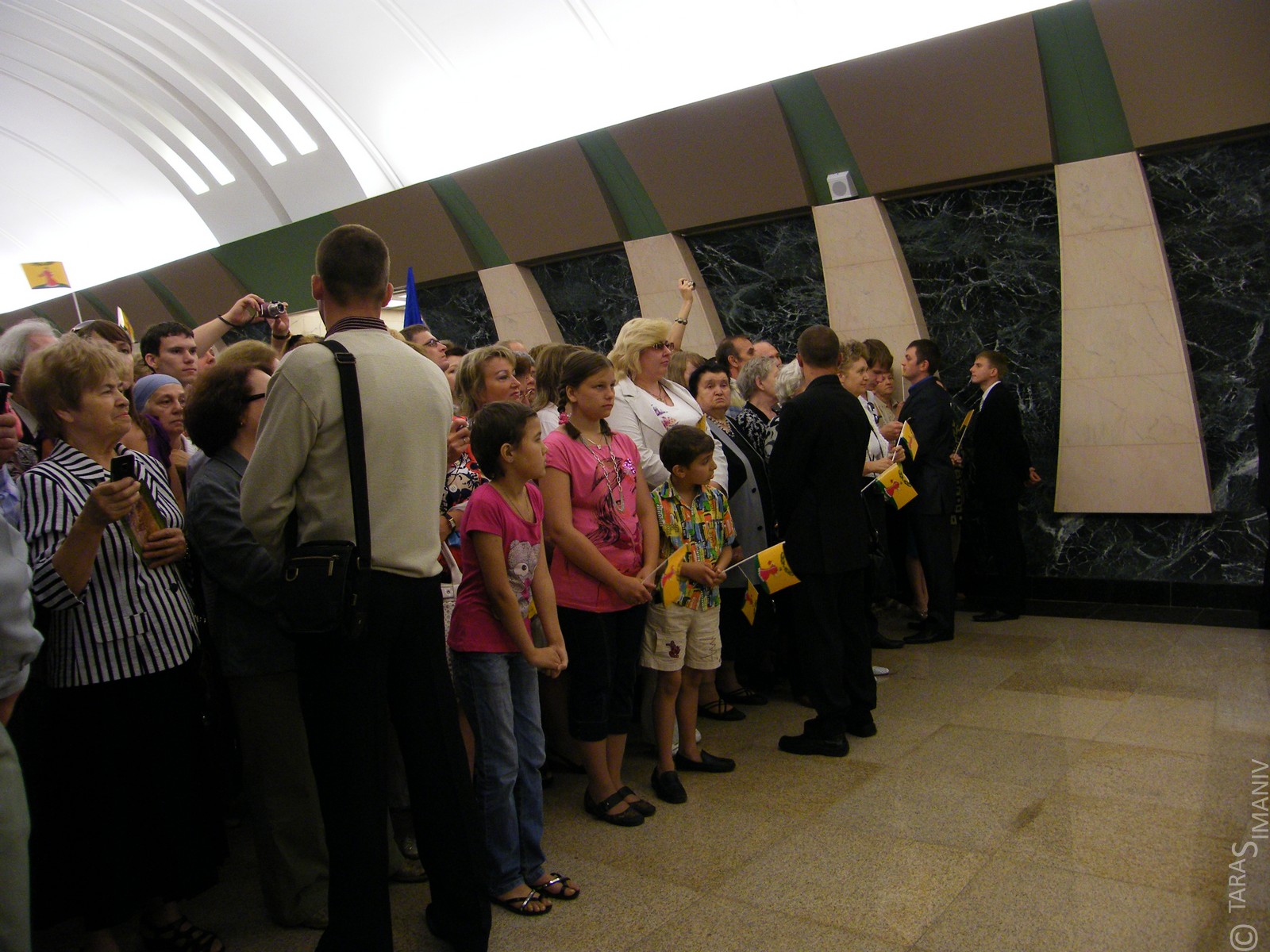 К 760-му пока не пускали. По традиции в новый вагон первым входит мэр