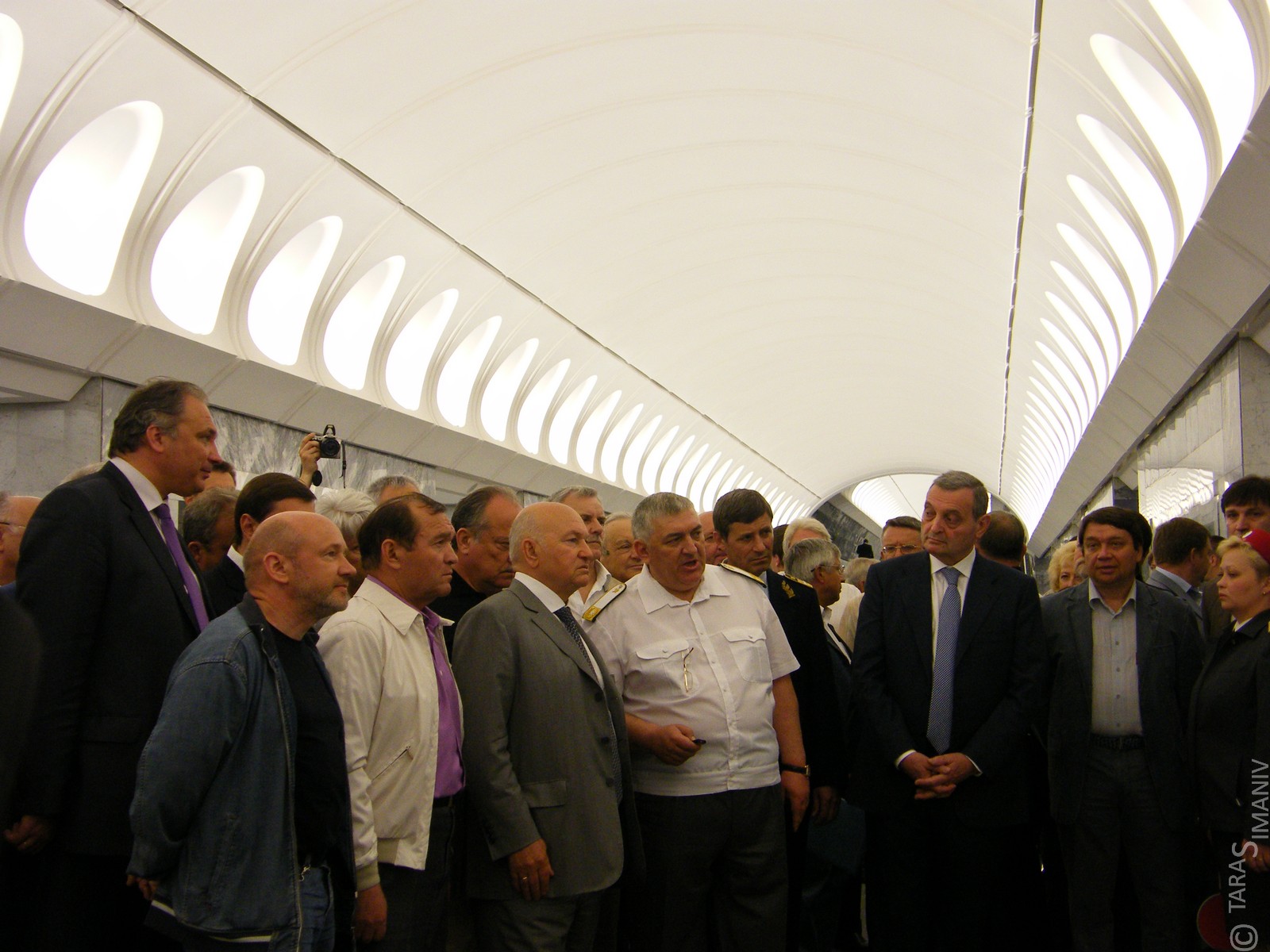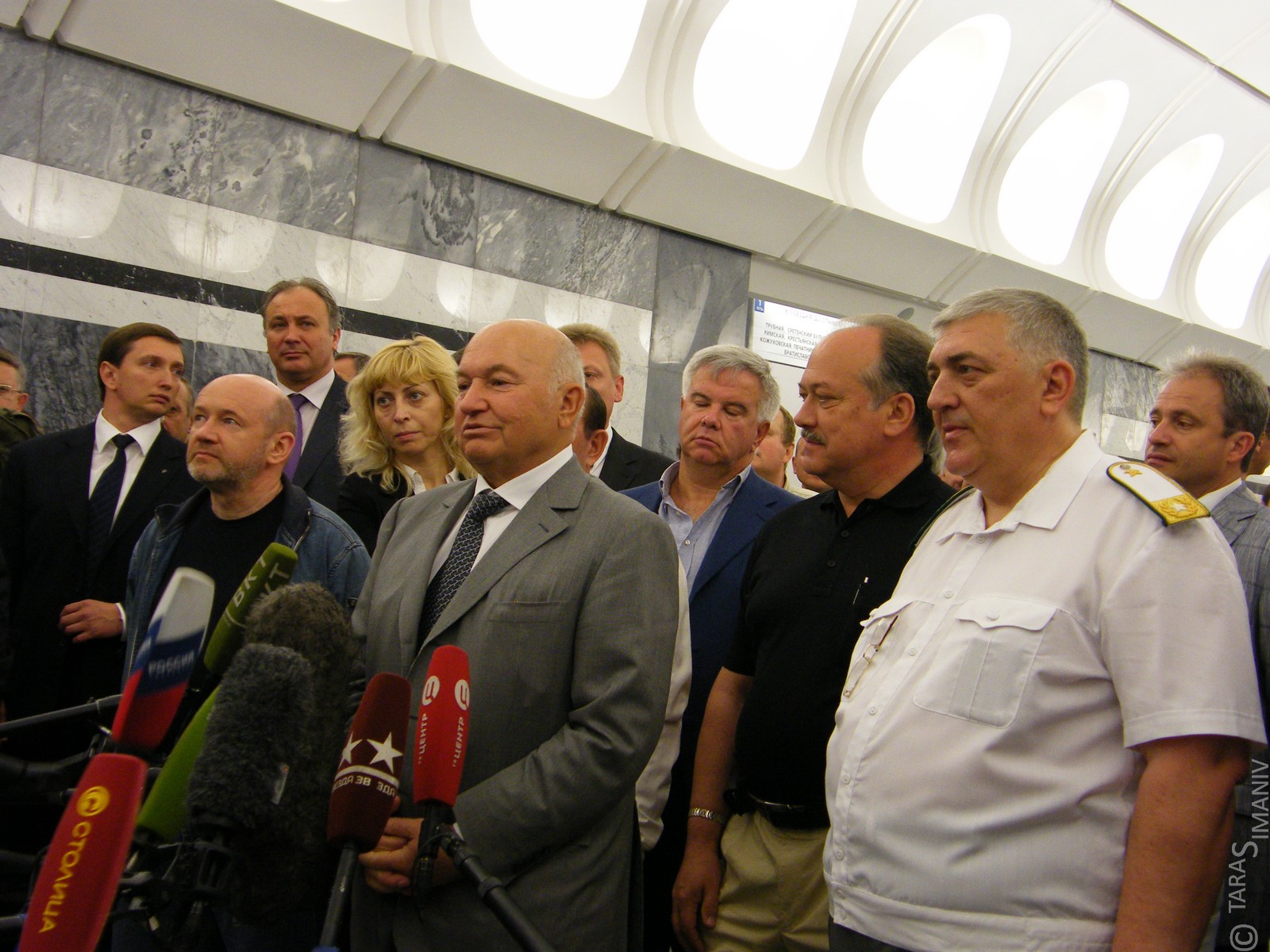 Наконец-то появилась делегация (примерно в 12:35). Дмитрий Владимирович показывает Юрию Михайловичу как лучше провести Люблинско-Дмитровскую линию