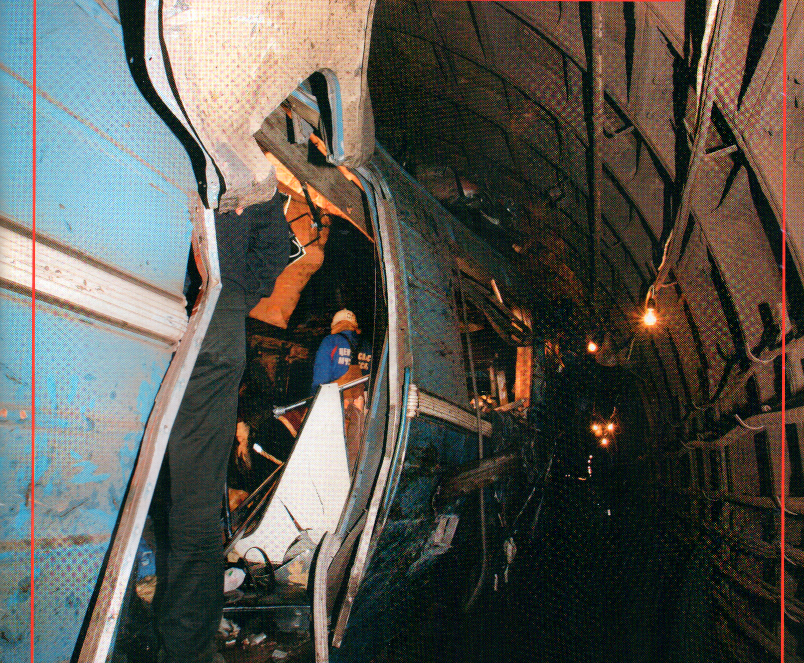 З.Ы. Судя по виду вагона больше всего пострадали двери и потолок. Сидения, пол, стёкла - почти всё не тронуто (только непосредственно у места взрыва). Отделки потолка почти нет (+ сам потолок тоже выгнут неслабо), двери все видели.