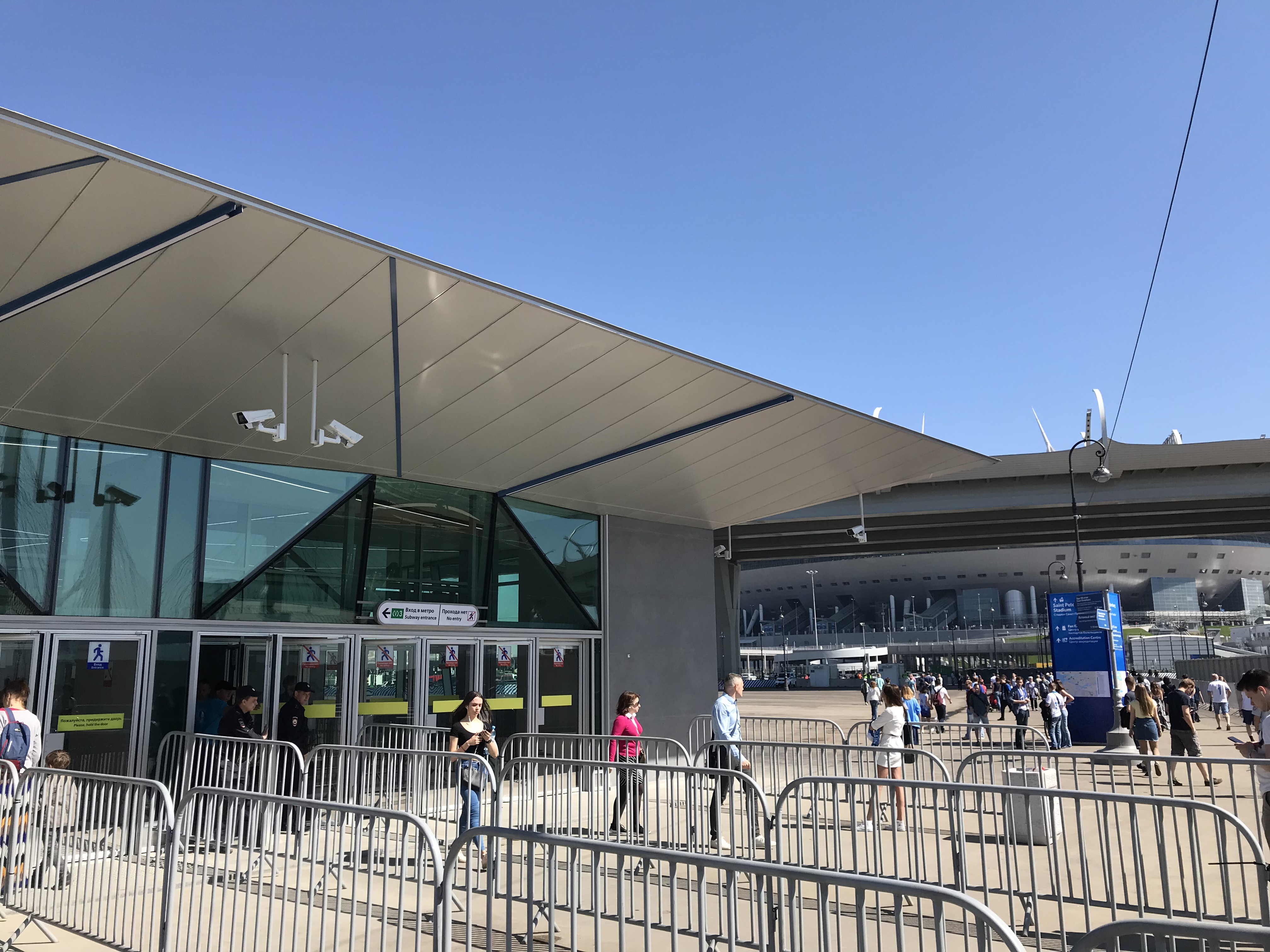 Всех поздравляю с открытием! Станция получилась очень оригинальная, на выход шли толпы болельщиков а в обратную сторону почти никого. Что поразило на вход досматривают 2 РАЗА: вверху в вестибюле и на промежуточной площадке. Небольшое видео с новой станции: https://www.youtube.com/watch?v=JVHv_i7vo1Q&t=424s