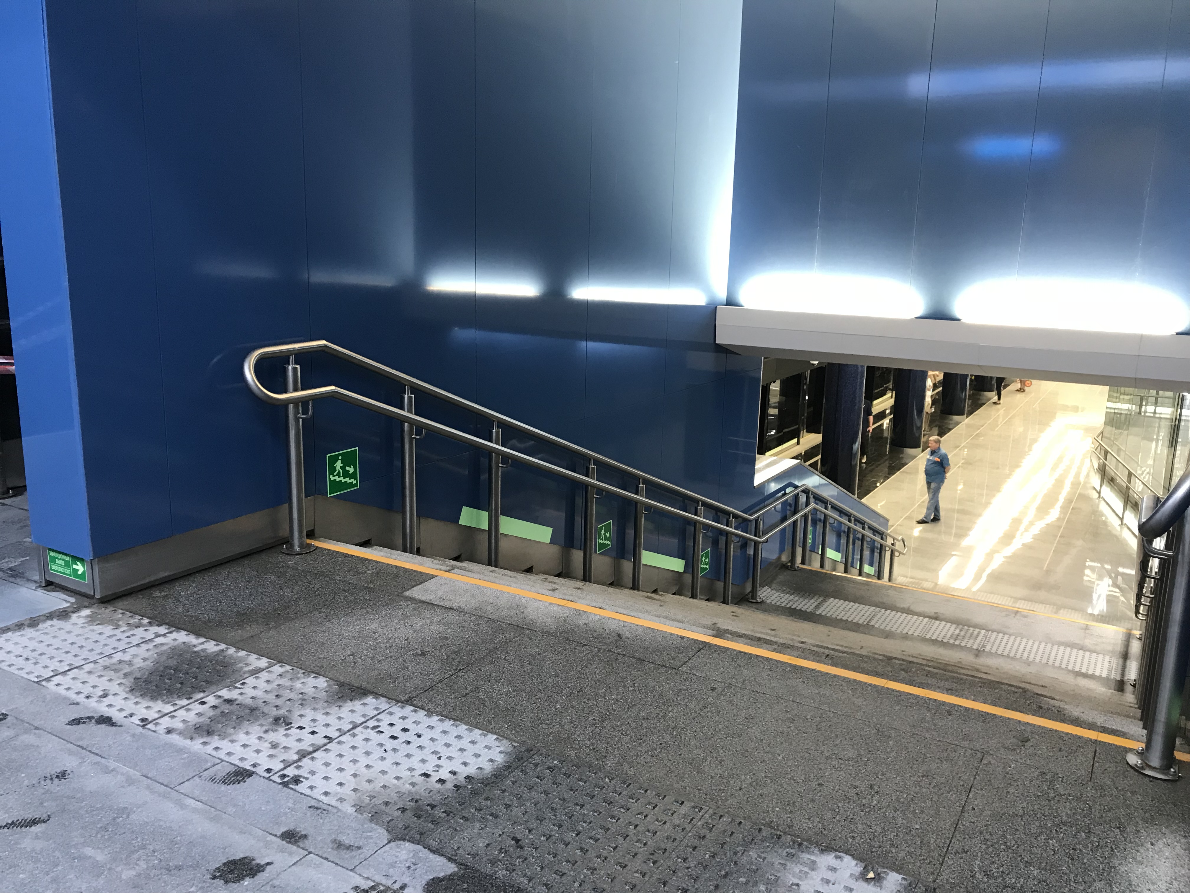 А вот то, что действительно не понравилось - траволатор для выхода на поверхность. Очень не удобно на нём подниматься и спускаться. Особенно если спешишь и надо бежать, можно разбить весь фэйс себе...А если кто-то падает, то может положить весь поток. Это не эскалатор, где можно ухватиться за ступеньки.