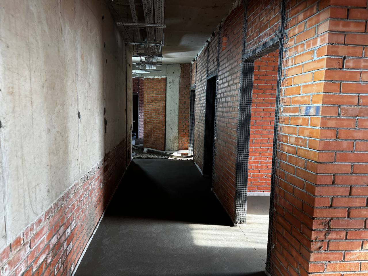 Внутри помещений инженерного корпуса метрополитена продолжаются отделочные работы, в той или иной степени выполнена отделка цокольного и 1-3 этажей, на 4 проступают к кладке внутренних перегородок, на 5 этаже завершается сооружение верхнего перекрытия.