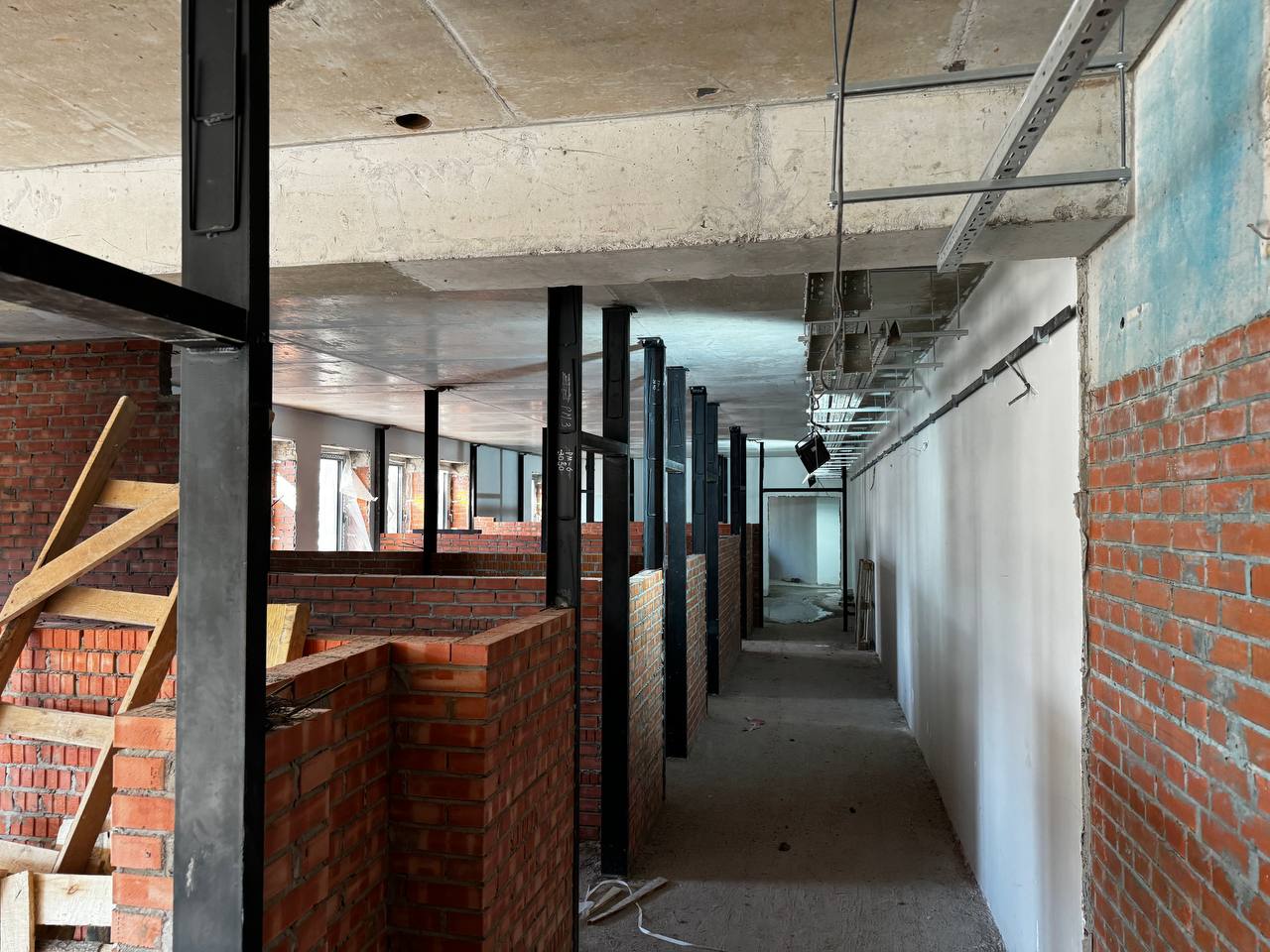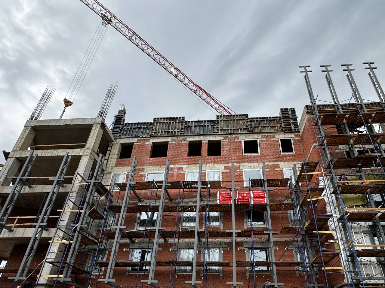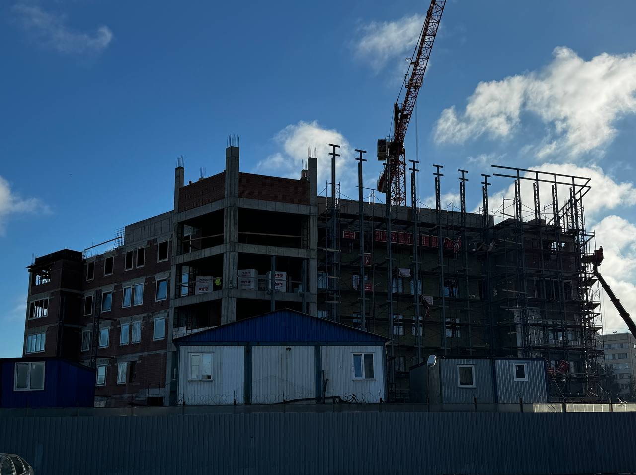 Стены здания достигли верхнего перекрытия 5 этажа, часть этого перекрытия уже забетонирована, а остающаяся часть армируется.